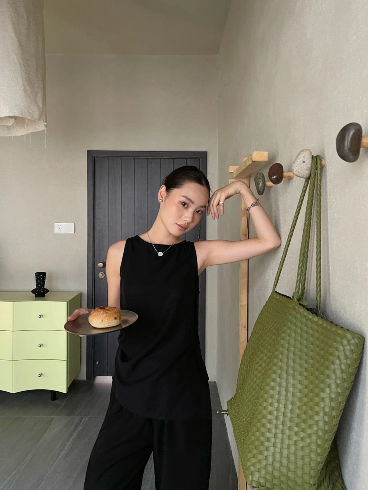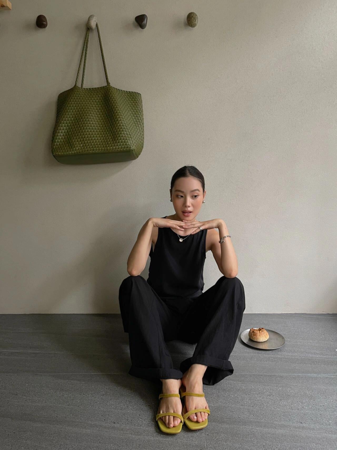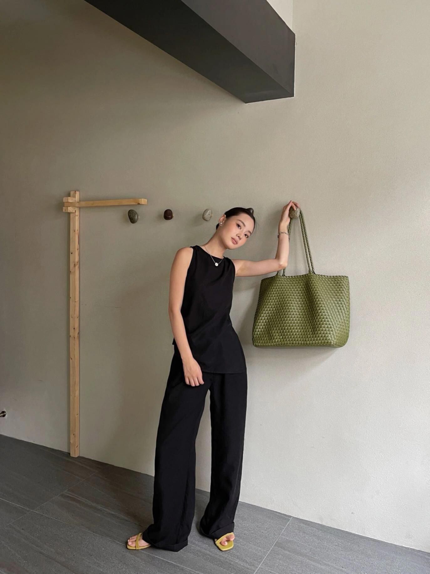 PURITY JAPAN · ミニマルアシンメトリー薄手ノースリーブトップス&ワイドストレートパンツセットアップ(ブラック)