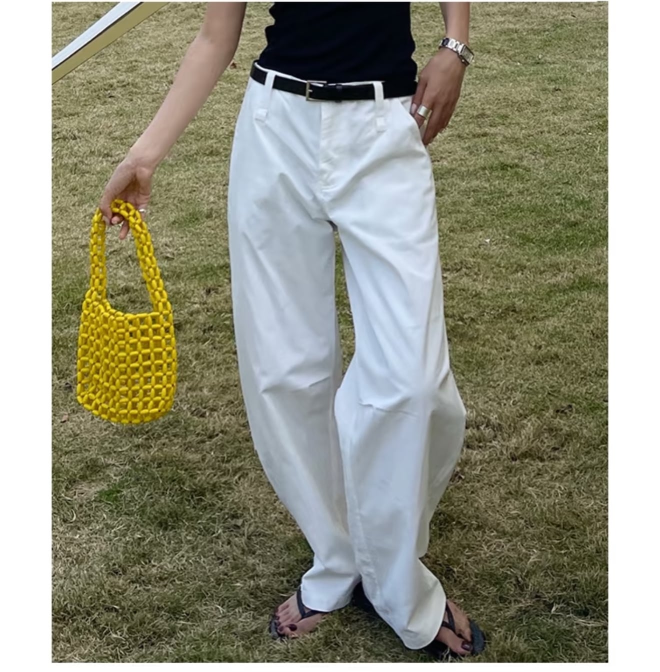 PURITY JAPAN · ニッチでミニマルなホワイトハイウエストパンツ 新作ゆったりワイドシルエット 通勤にもカジュアルにも◎ 着痩せ効果あり
