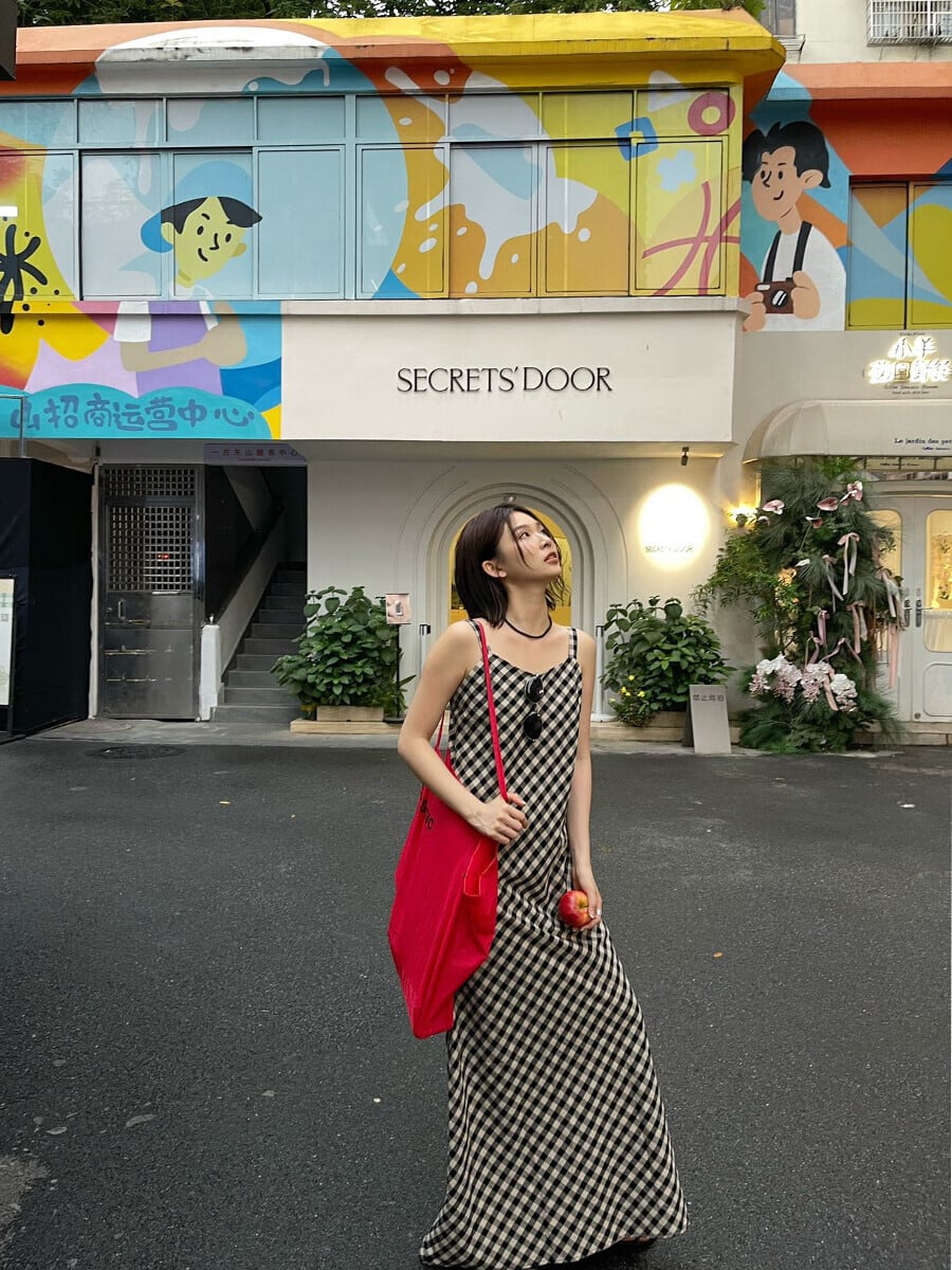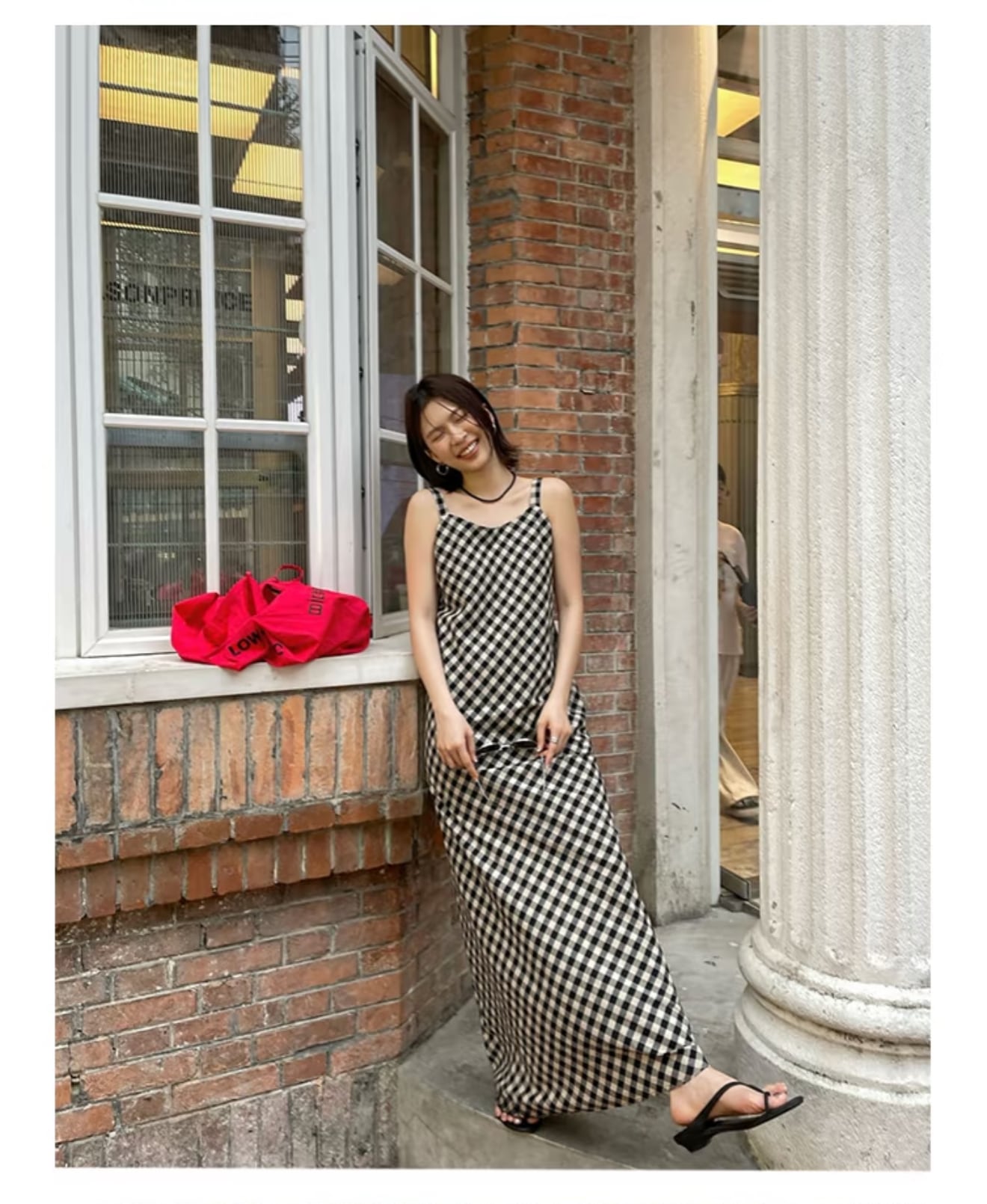 **PURITY JAPAN|フレンチムード満載の斜めチェック柄ノースリーブロングワンピース**