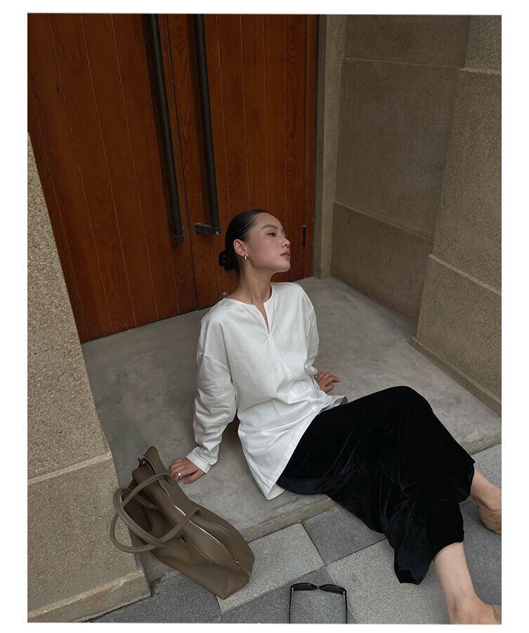 **PURITY JAPAN|フレンチミニマルニッチ・秋・ハイウエストマーメイドスカート・細見え・ブラックベルベットロングスカート**