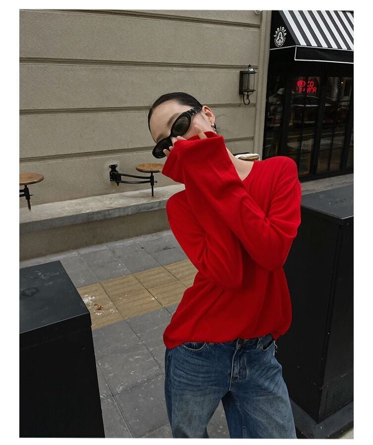 **PURITY JAPAN|シンプル韓国風ニットゆったり長袖トップス レディース 赤 おしゃれ細見え**