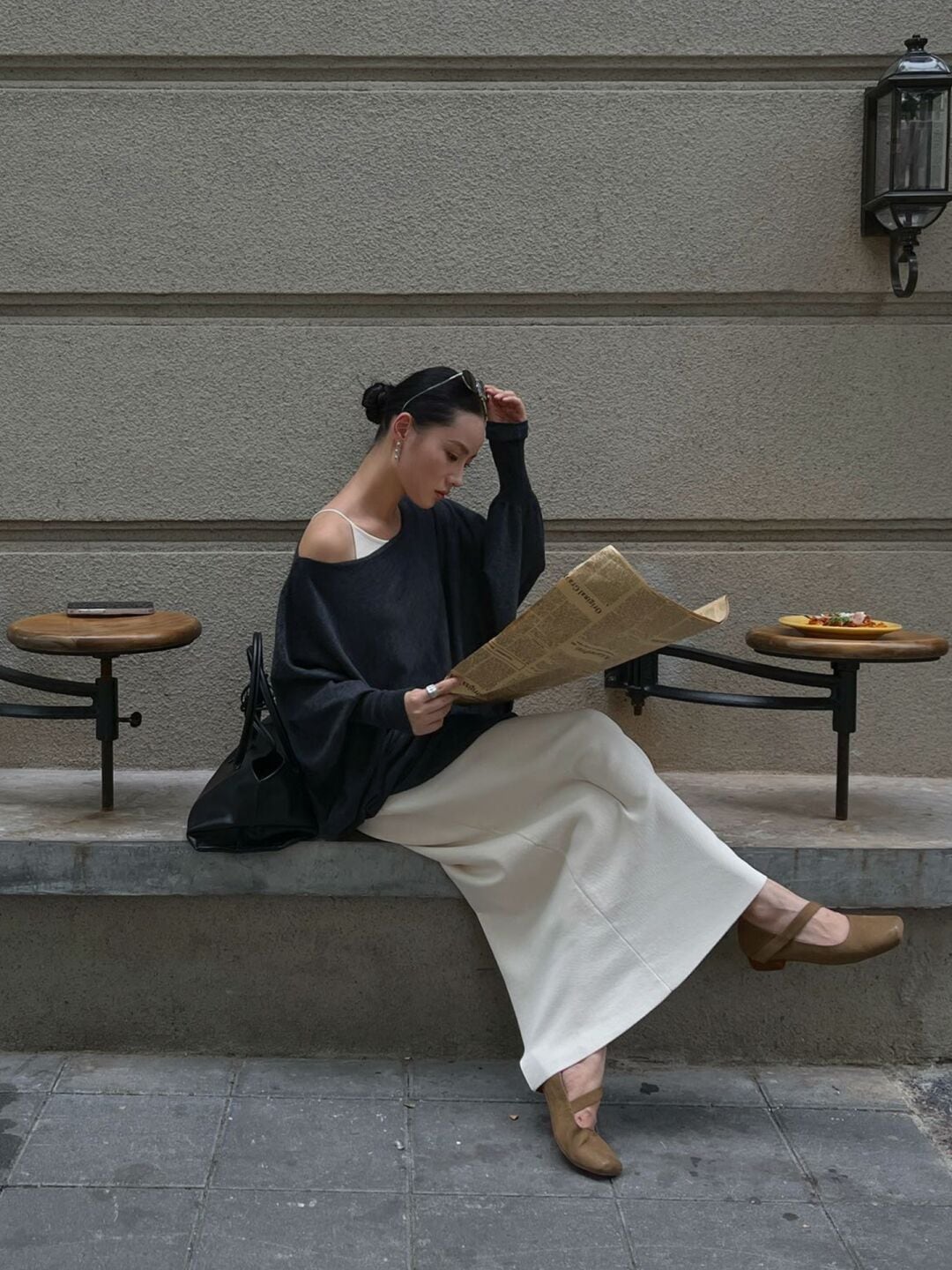 **PURITY JAPAN · 秋冬新作 ニッチシンプル アシンメトリー デザイン ウールニット レディース バットスリーブ ゆったりシルエット 体型カバー 細見え 大人カジュアル セーター**