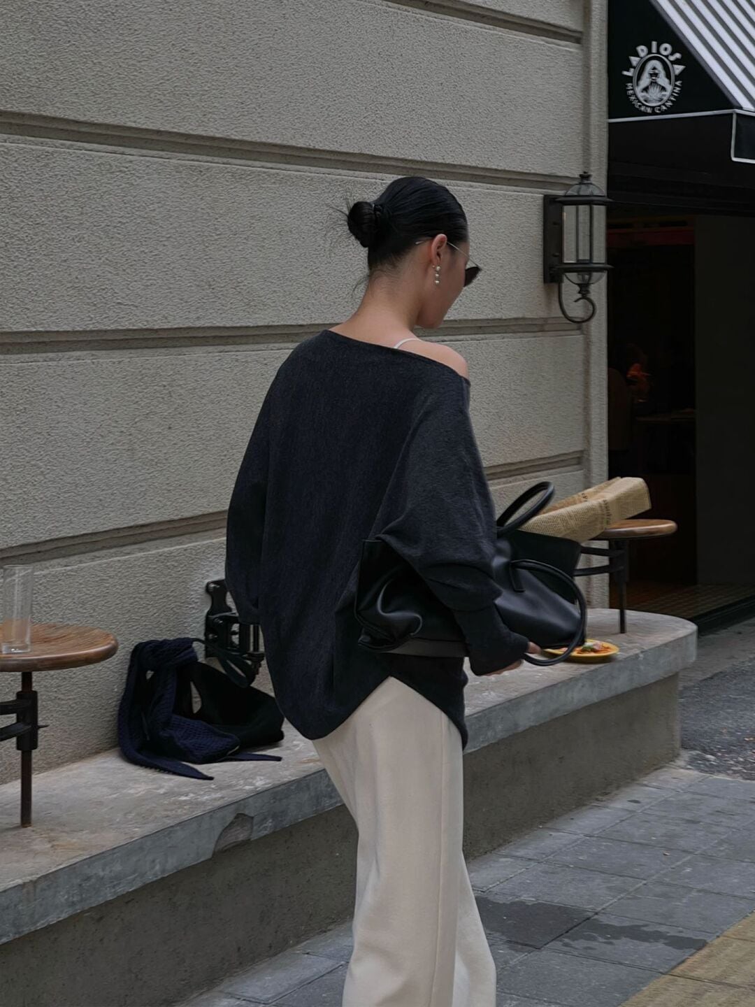 PURITY JAPAN · 秋冬新作 ニッチシンプル アシンメトリー デザイン ウールニット レディース バットスリーブ ゆったりシルエット 体型カバー 細見え 大人カジュアル セーター
