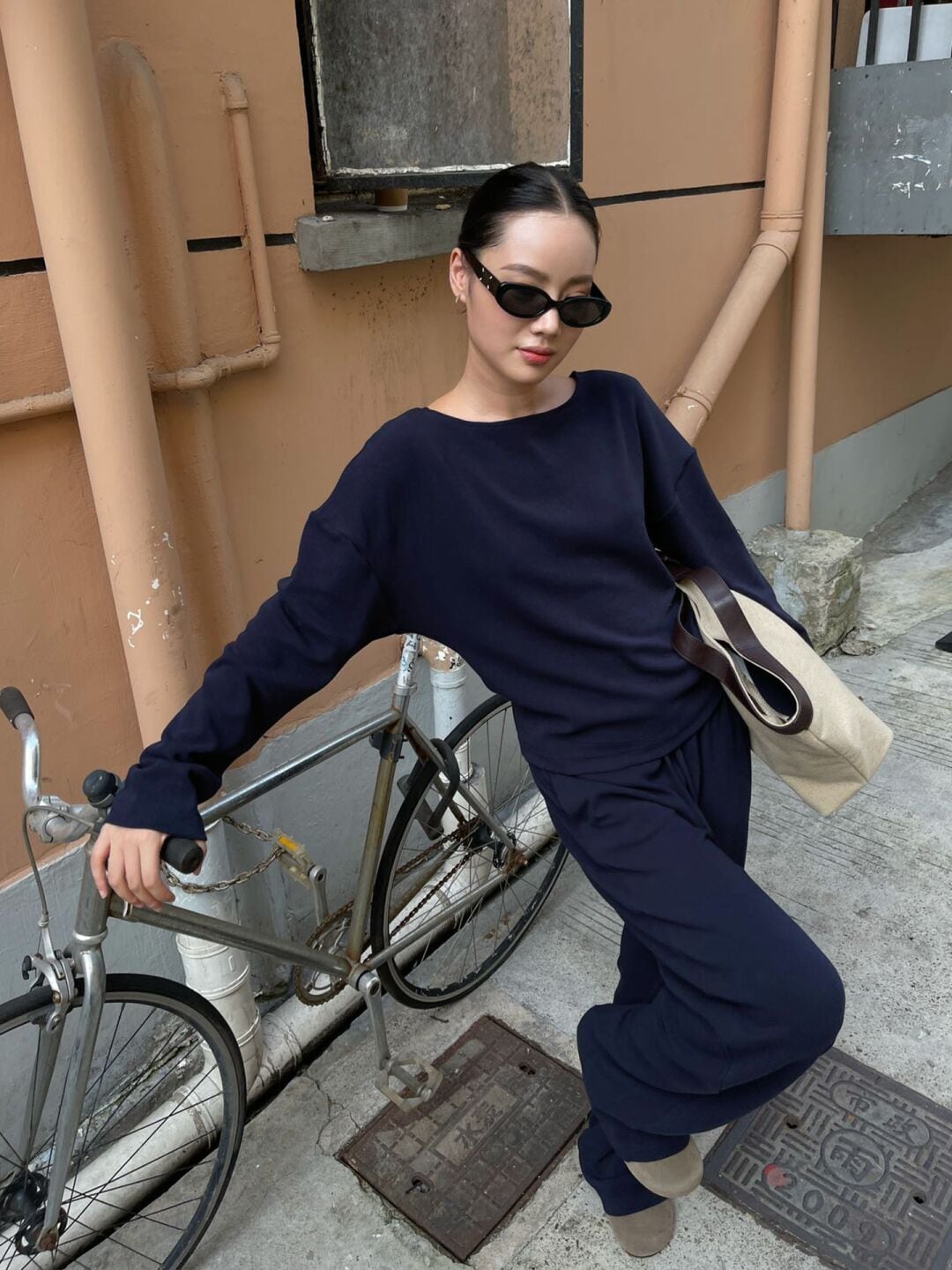 PURITY JAPAN · 秋冬新作 ニッチミニマル レディース 2点セットアップ ストレートパンツ フレンチ風 長袖トップス 上下セット 体型カバー 細見え 大人カジュアル