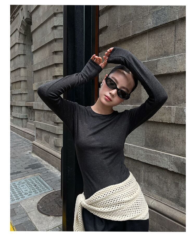 ・サイズ: タイトフィットのシルエットが体型を美しく引き立て、細見え効果を実現します。長袖のデザインは、秋の肌寒さにも対応しており、重ね着スタイルにも最適です。