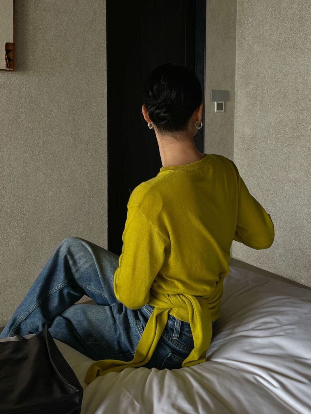 ・デザイン特性により、仕上がりにわずかな個性が見受けられる場合がございますが、これもこのニットの魅力の一部ですので、ご了承の上楽しんでいただければと思います。