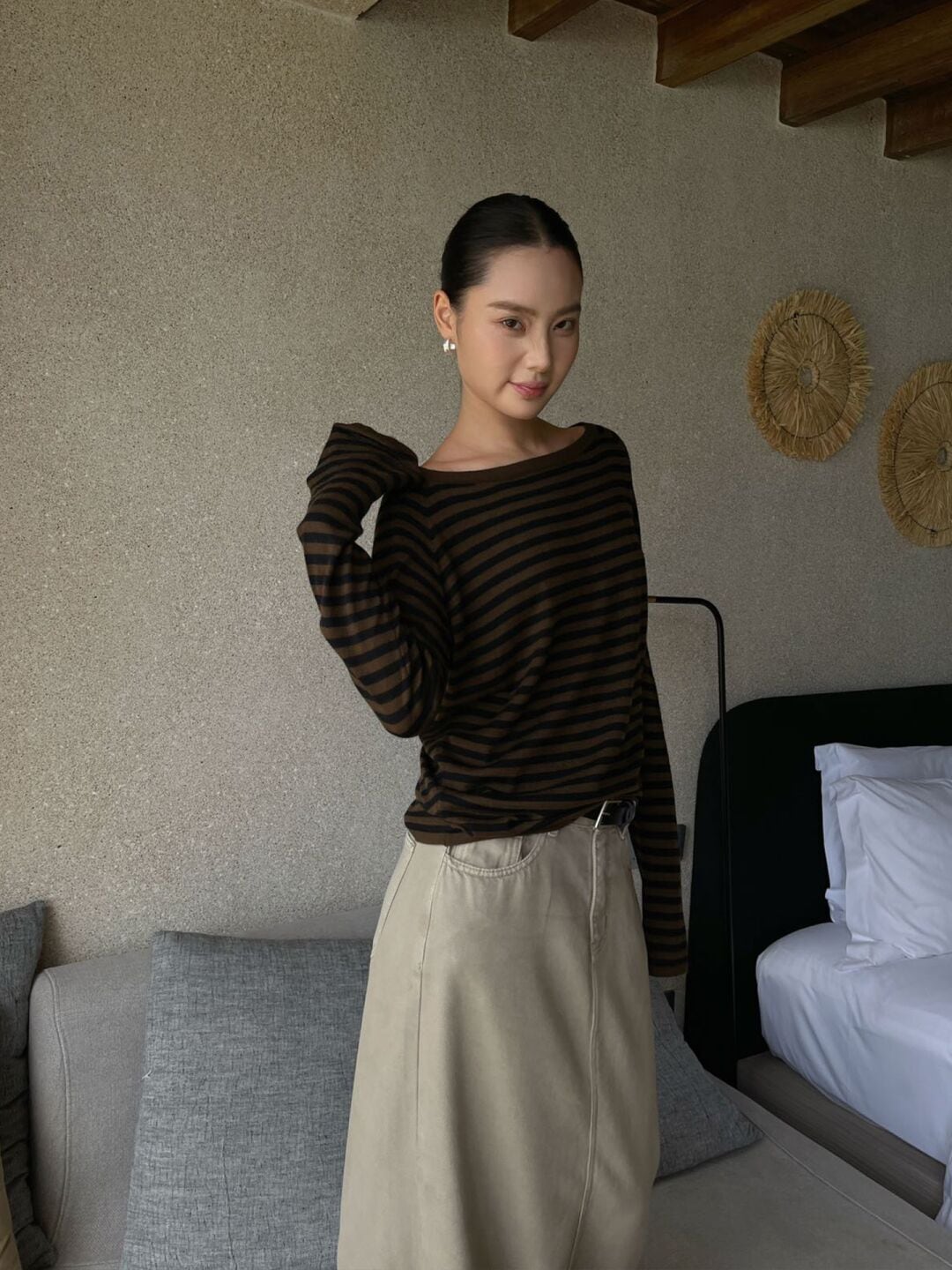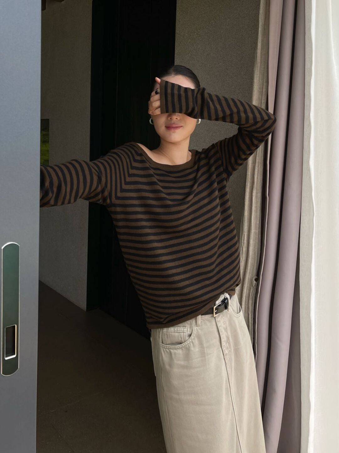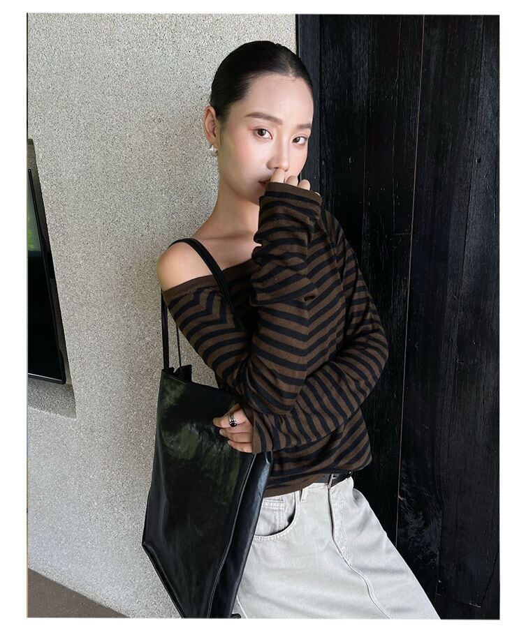 PURITY JAPAN · 秋新作 ニッチミニマル 韓国風 ボーダー ニットトップス レディース 長袖Tシャツ ゆったり インナーにもアウターにも使える シンプル おしゃれ 体型カバー 細見え 大人カジュアル