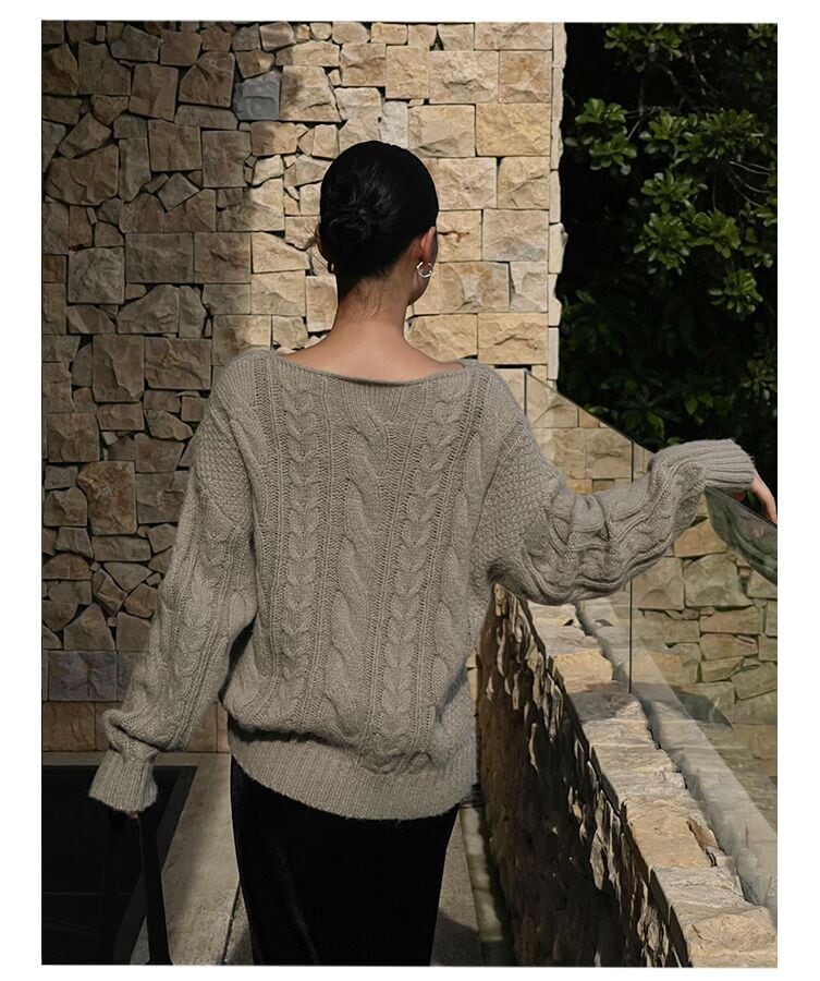 ・デザイン特性により、仕上がりにわずかな個性が見受けられる場合がございますが、これもこのケーブル編みニットの魅力の一部ですので、ご了承の上楽しんでいただければと思います。