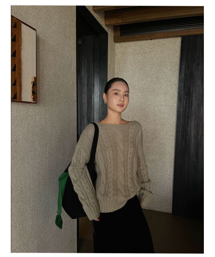 PURITY JAPAN · フレンチミニマル クルーネック ケーブル編み ニットセーター レディース 秋新作 レトロ おしゃれ 万能トップス