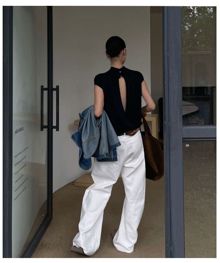 PURITY JAPAN · フレンチミニマル 透かし編み ニットトップス レディース 秋新作 ゆったり オープンバック ベスト おしゃれ
