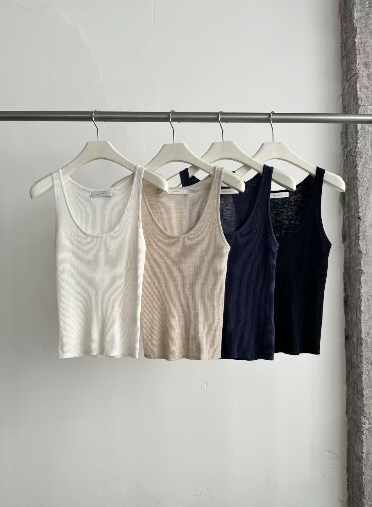 26312 PURITY JAPAN リブタンクトップ レディース ウール混 伸縮性あり インナー ノースリーブ 柔らかい 着心地抜群 シンプル 上品 春夏