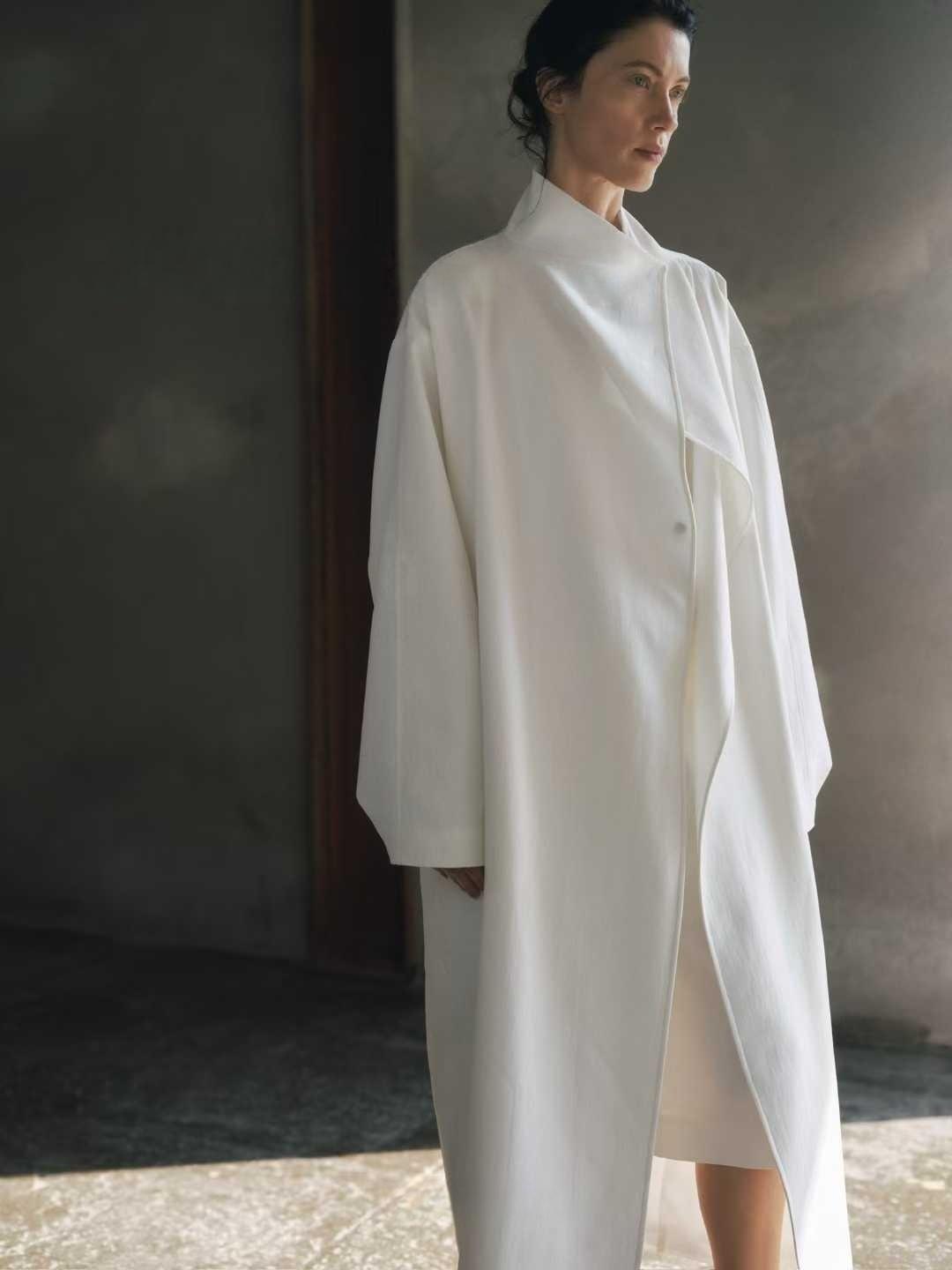 軽やかに羽織れる、大人のためのミニマルロングコート。
