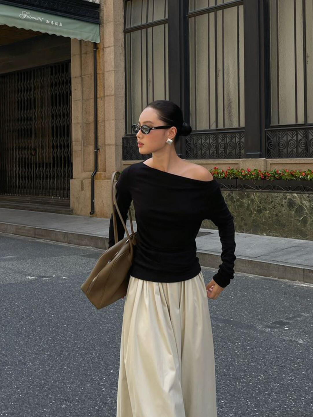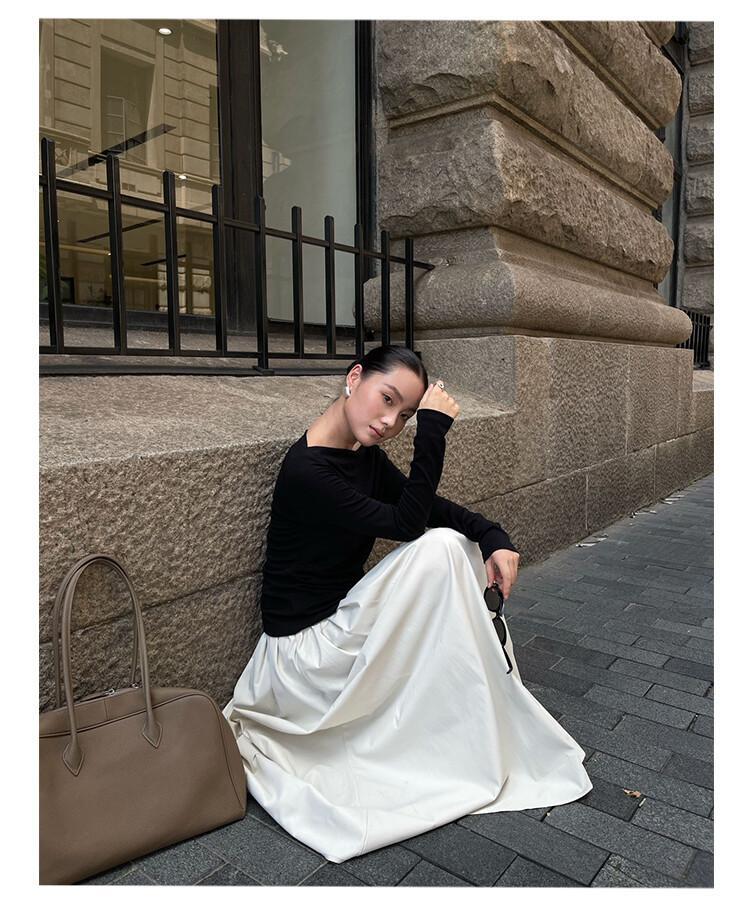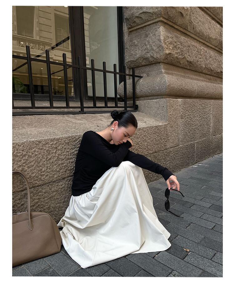 6884 PURITY JAPAN・新作 レディーストップス フレンチミニマル ハイネック 長袖インナー カットソー ブラック