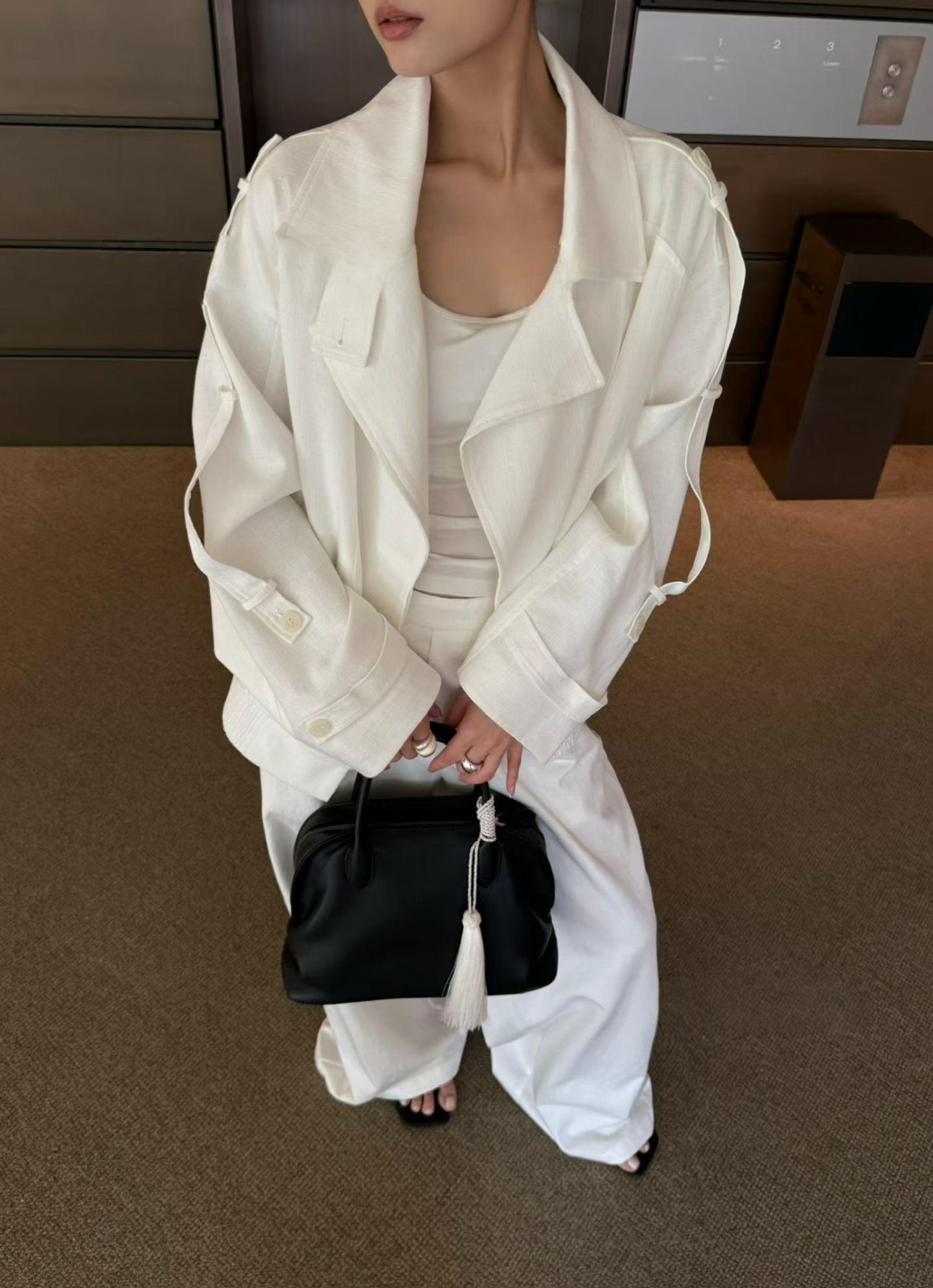 T0161 PURITY JAPAN テンセルリネンショートトレンチジャケット レディース 軽量 春アウター きれいめ 抜け感 上品 羽織り