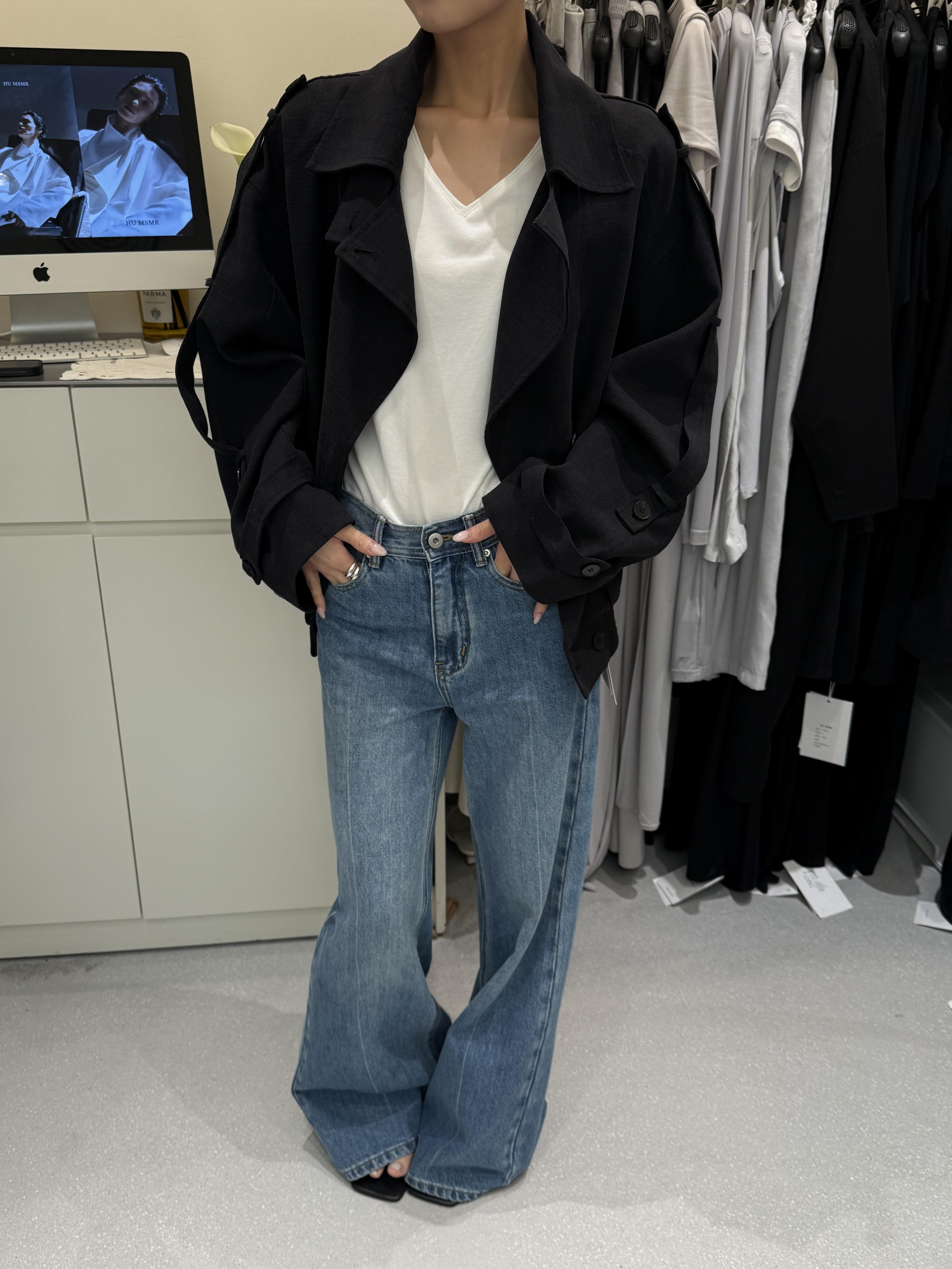 ショート丈デザインでバランスが取りやすく、パンツにもスカートにも合わせやすい万能アウター。