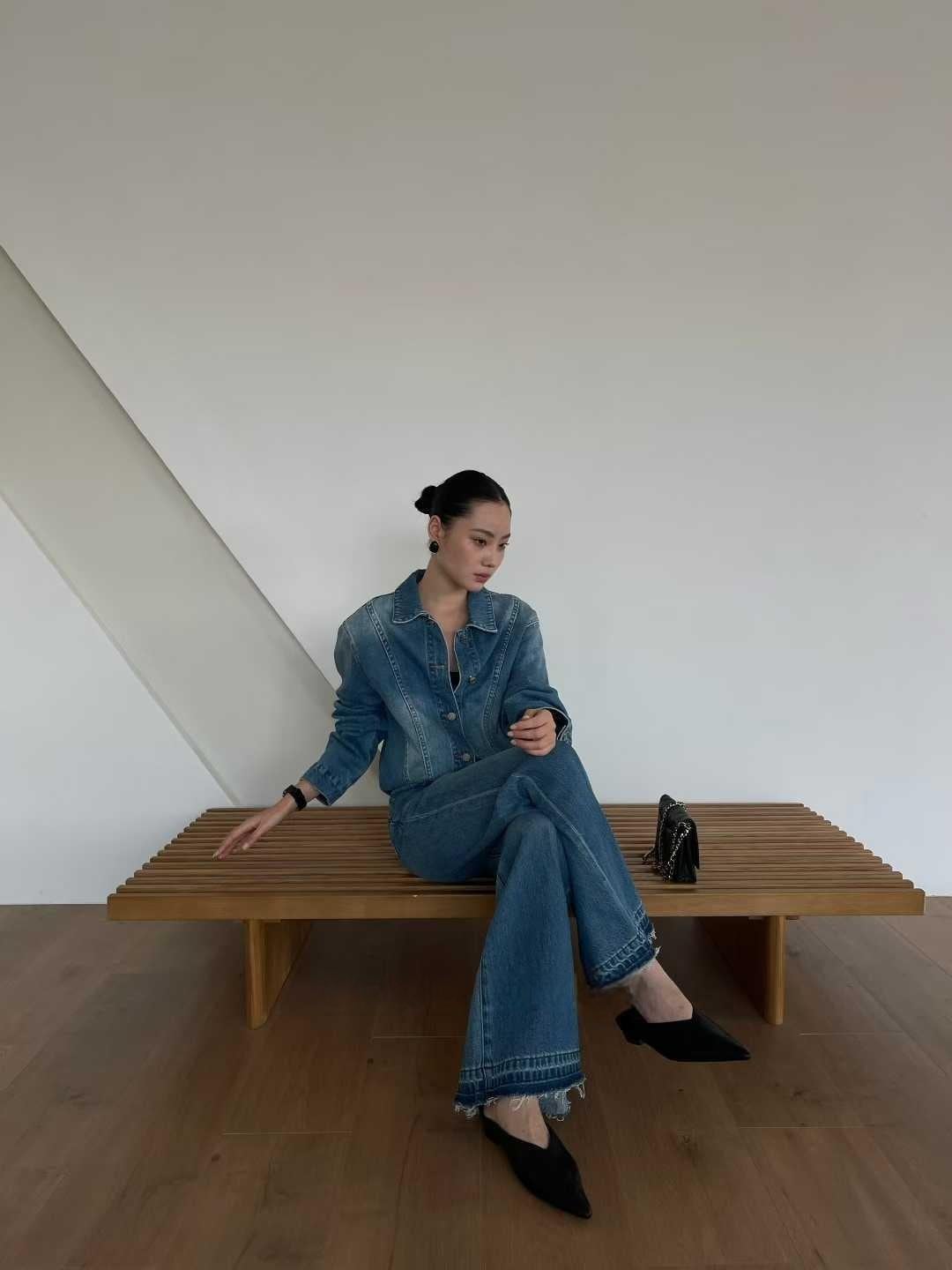 6081 PURITY JAPAN レディース 薄手デニムジャケット|純綿・ノンストレッチ・ショート丈・春秋ライトアウター・韓国風シルエット・着痩せ効果
