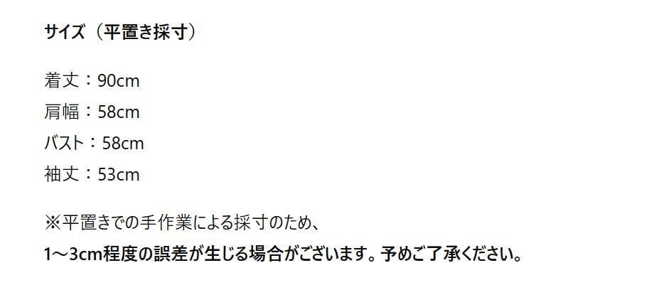 着丈:90cm肩幅:58cmバスト:58cm袖丈:53cm
