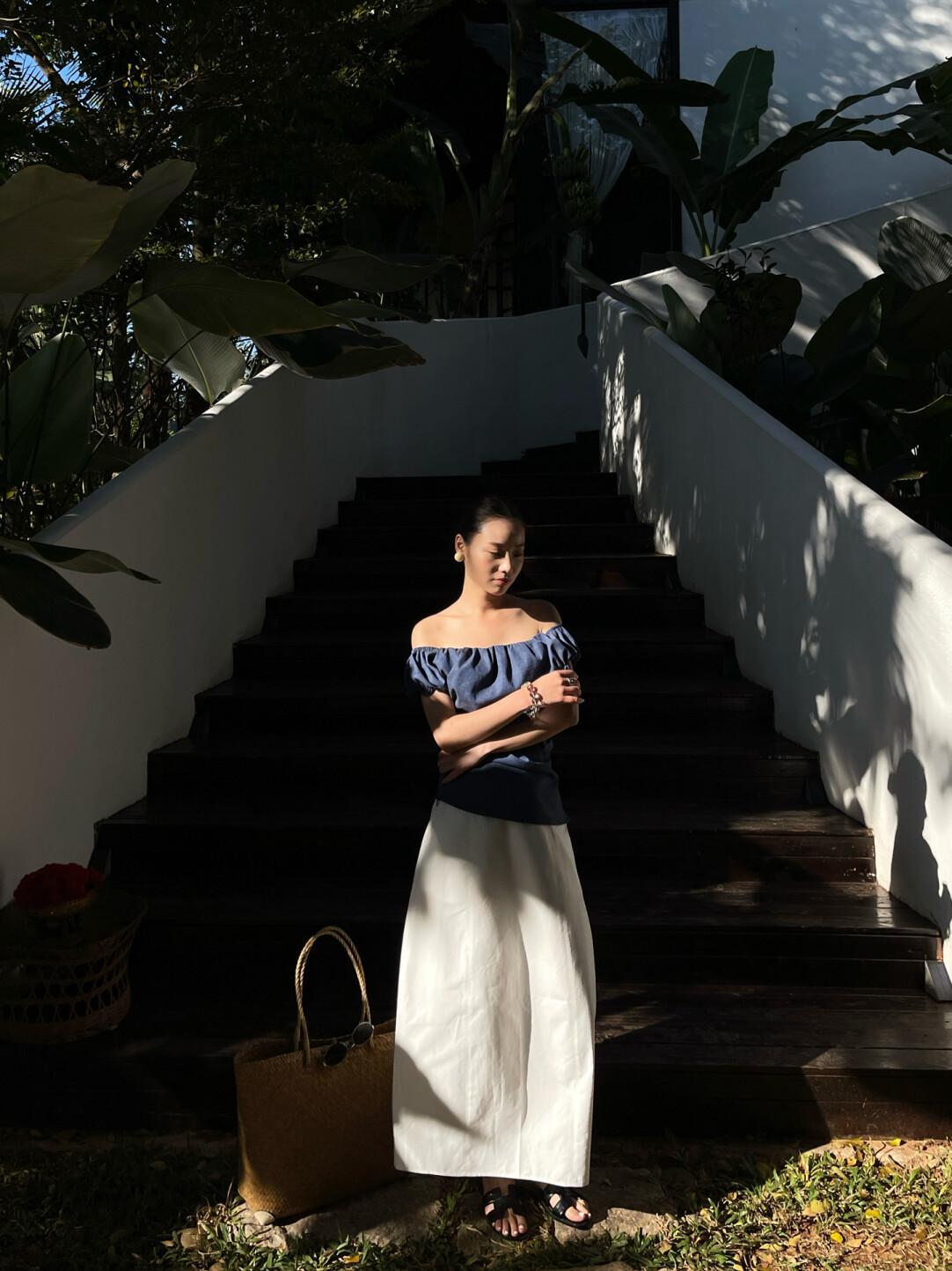 バックスタイルにはスリットを施し、歩くたびに軽やかな抜け感をプラス。上品さを保ちながらも、重くなりすぎない絶妙なバランスに仕上げました。