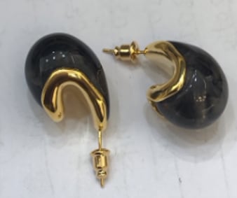 SSY128 PURITY JAPAN ピアス レディース ブラック×ゴールド 配色デザイン 樹脂×925シルバー 上品 高見え 小顔効果 大人ジュエリー