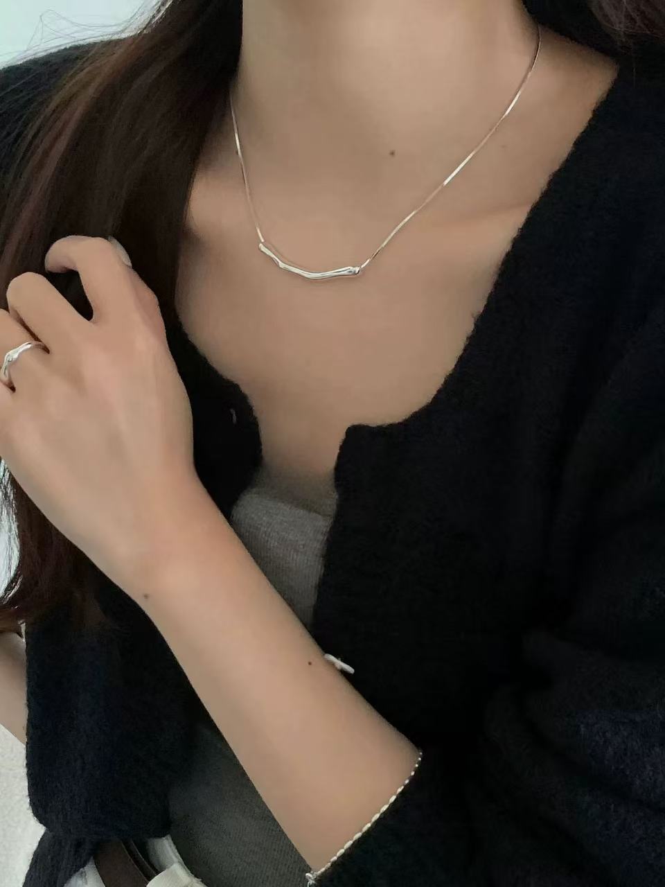 SST1698 PURITY JAPAN 925シルバーネックレス レディース 不規則ライン バーネックレス ミニマル 上品 高見え 鎖骨ネックレス 大人ジュエリー