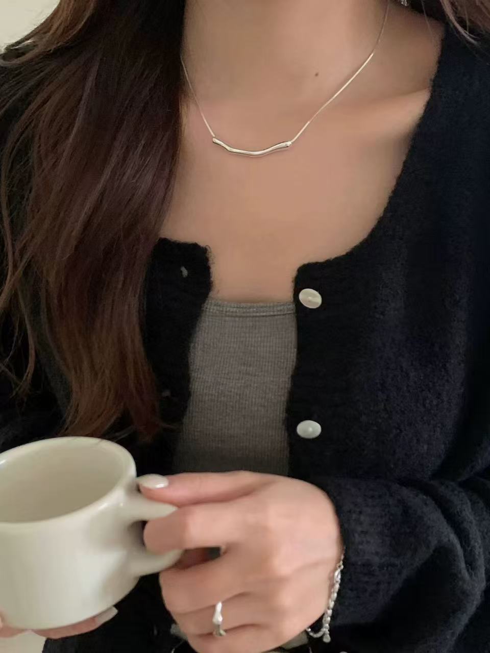 静かに印象に残るネックレスです。