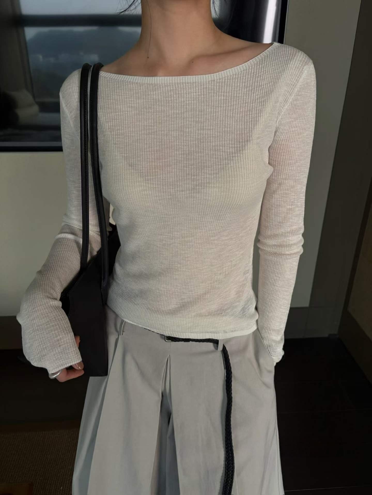 G6010 PURITY JAPAN フレンチミニマル リネン混リブトップス レディース 長袖 細見え ボートネック 伸縮性あり 上品 薄手 インナー 重ね着 大人カジュアル