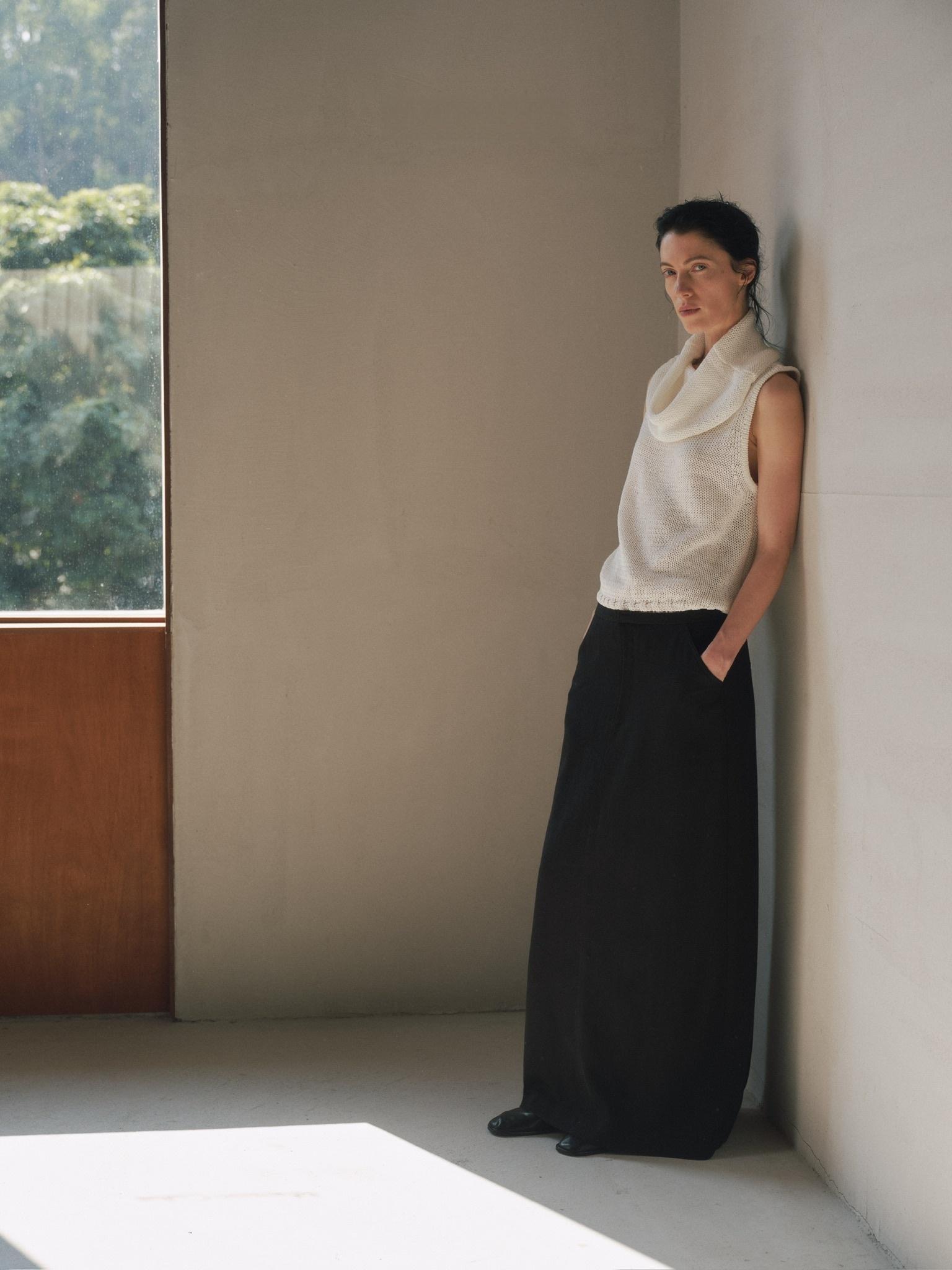 リヨセル×コットン×リネンの混紡素材を使用し、さらっとした肌触りと上品なドレープ感を両立。軽やかで通気性もよく、夏でも快適に着用できます。
