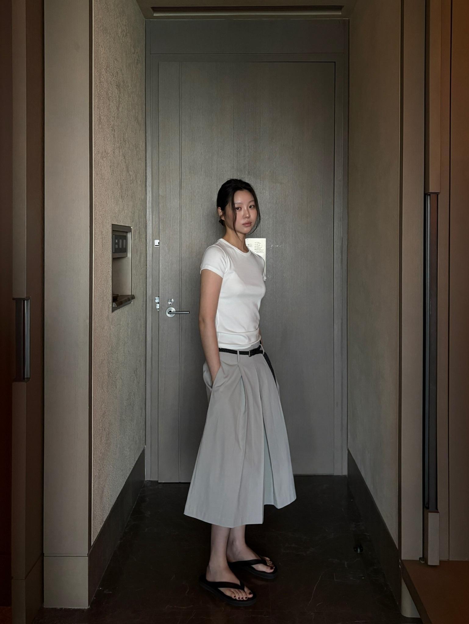 締め付け感はないのに、自然に細見え。インナーとしても、一枚着としても使える万能トップスです。