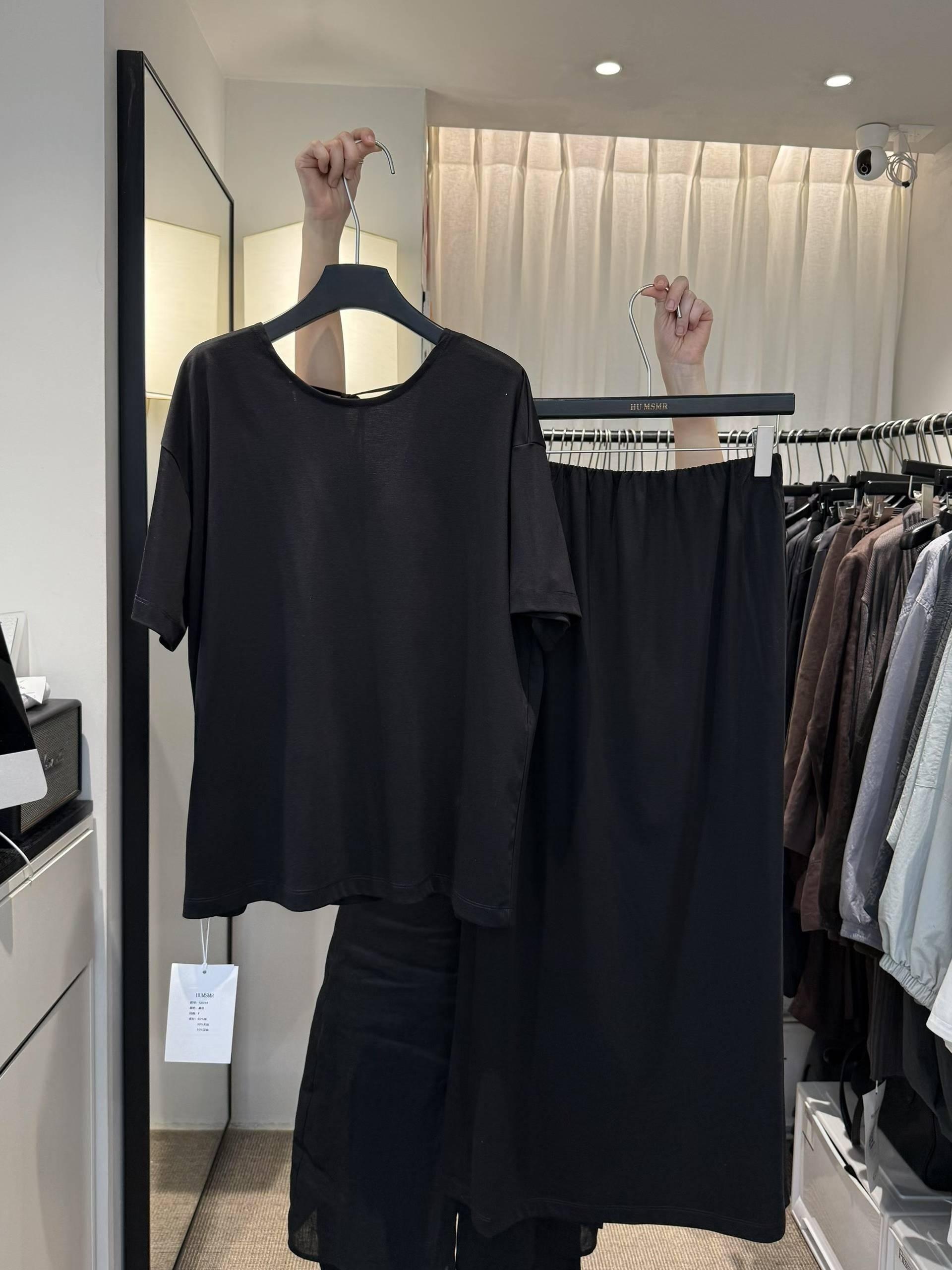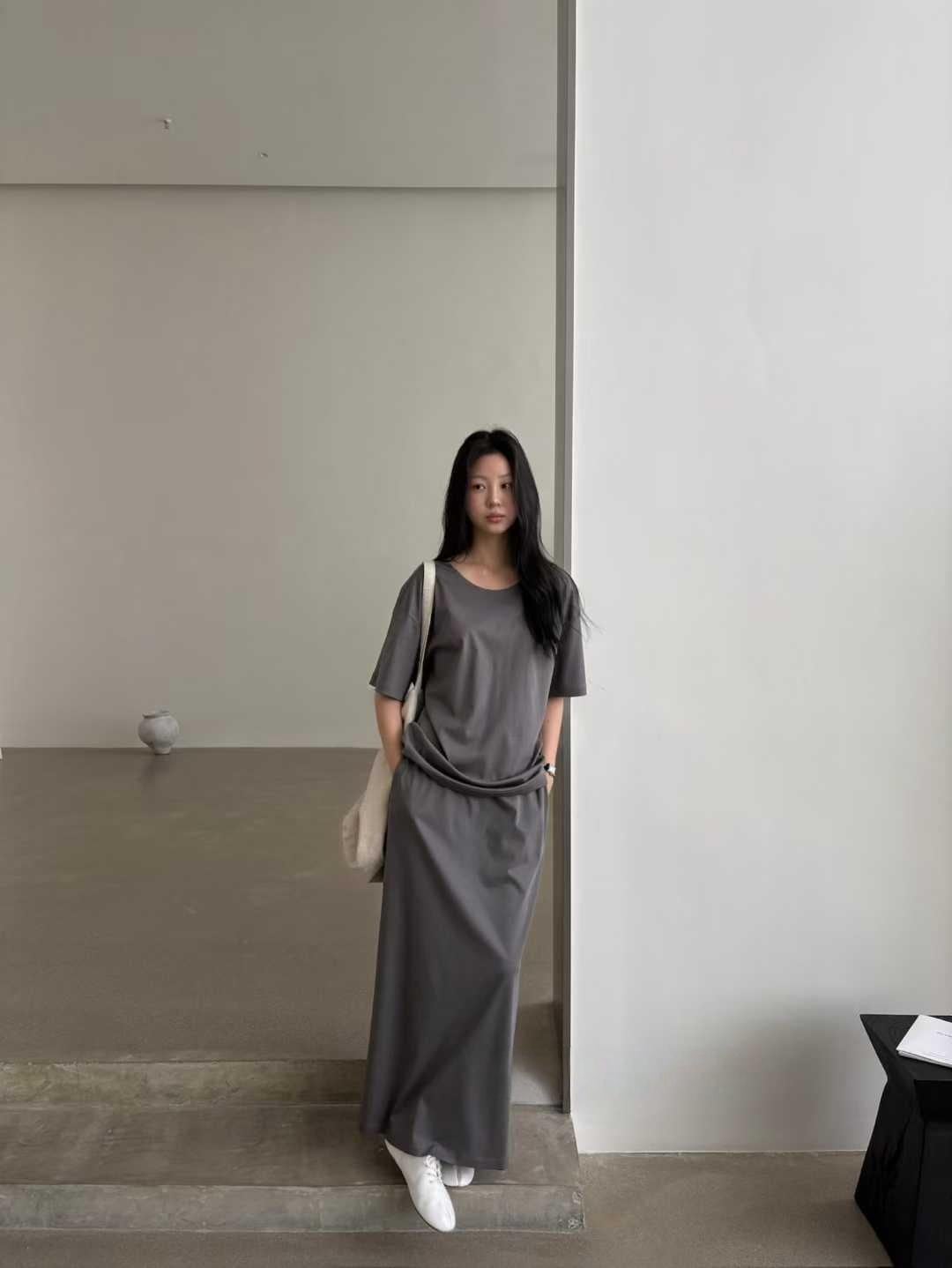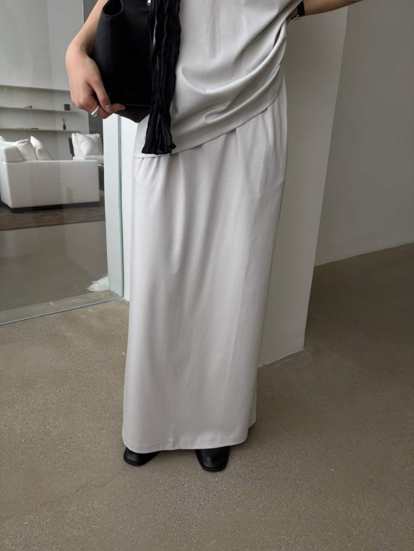 G8038+G8039 PURITY JAPAN|コットン×リヨセル×ヘンプ混 セットアップ レディース 半袖トップス+ロングスカート 上下セット 美シルエット 細見え 体型カバー バックデザイン リラックス 大人ミニマル フレンチライク 通勤 休日コーデ