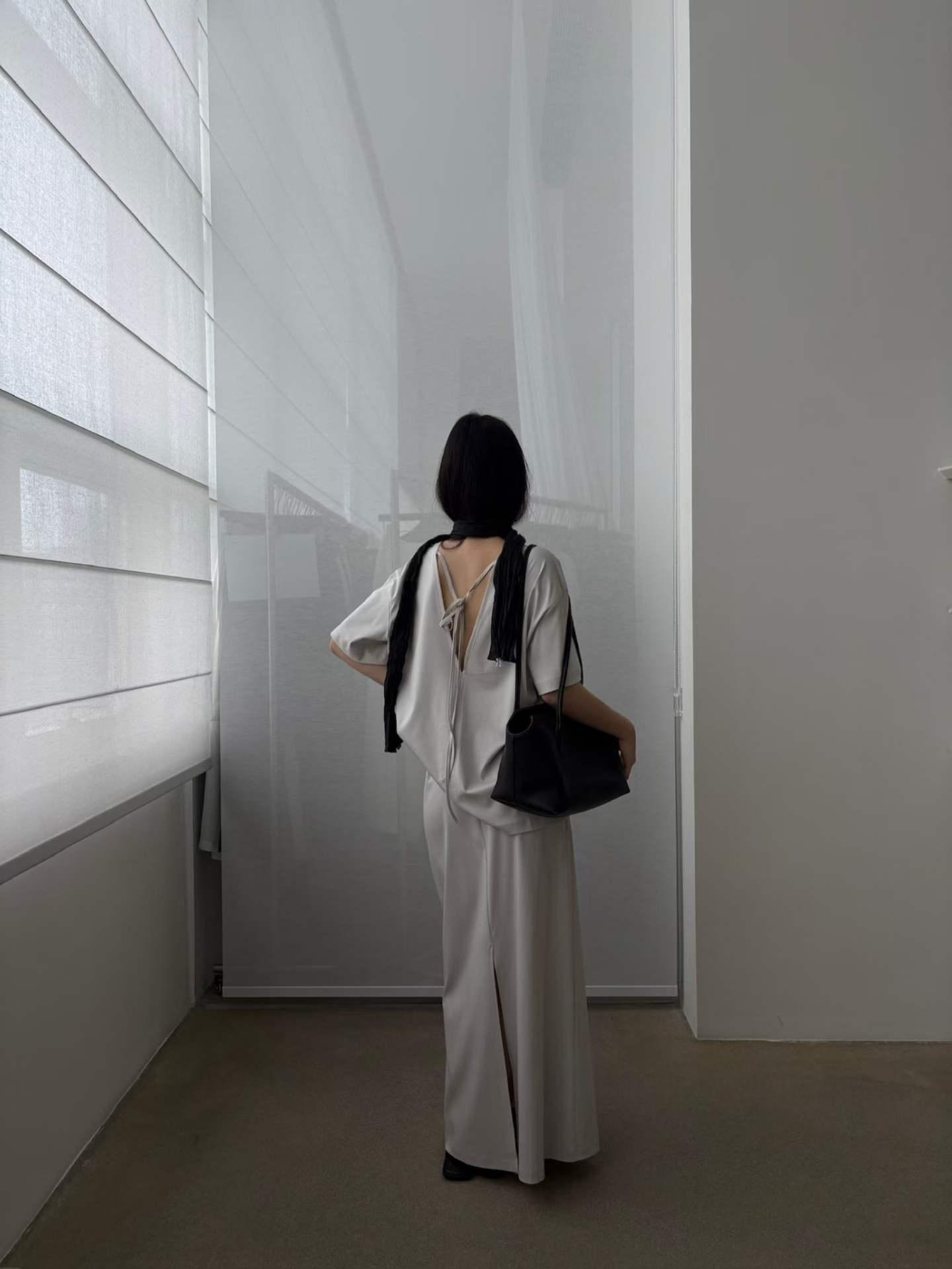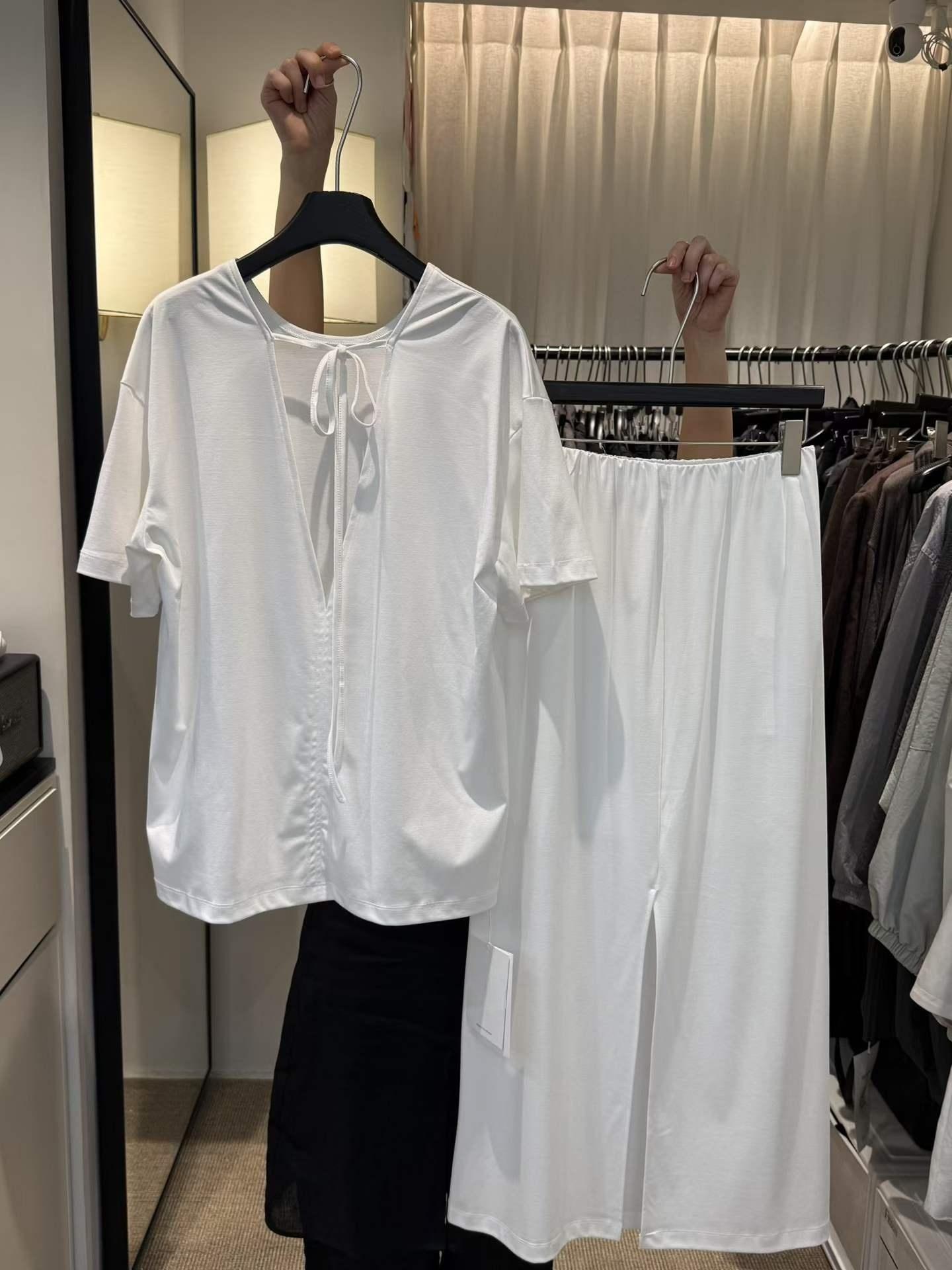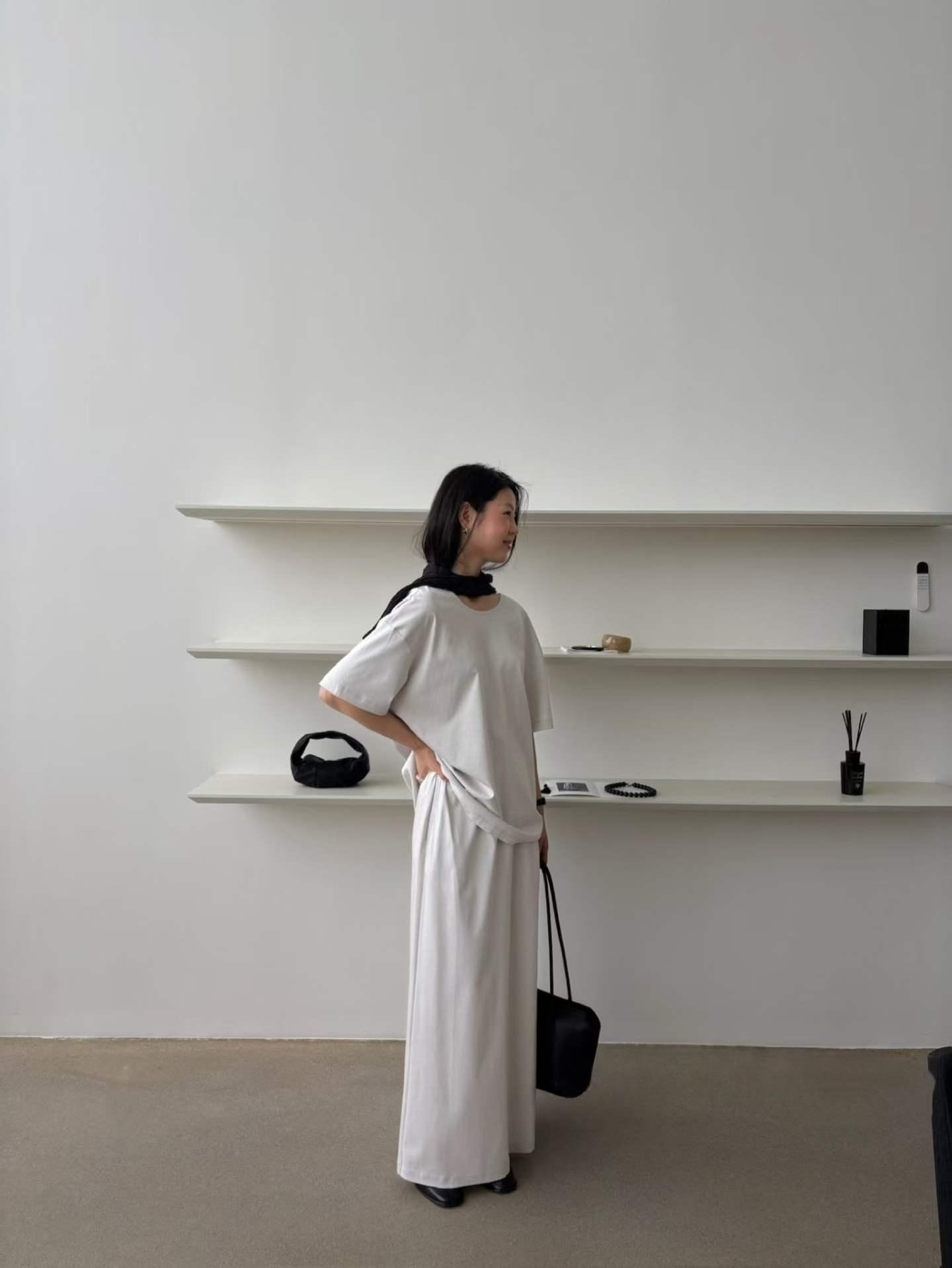 G8038+G8039 PURITY JAPAN|コットン×リヨセル×ヘンプ混 セットアップ レディース 半袖トップス+ロングスカート 上下セット 美シルエット 細見え 体型カバー バックデザイン リラックス 大人ミニマル フレンチライク 通勤 休日コーデ