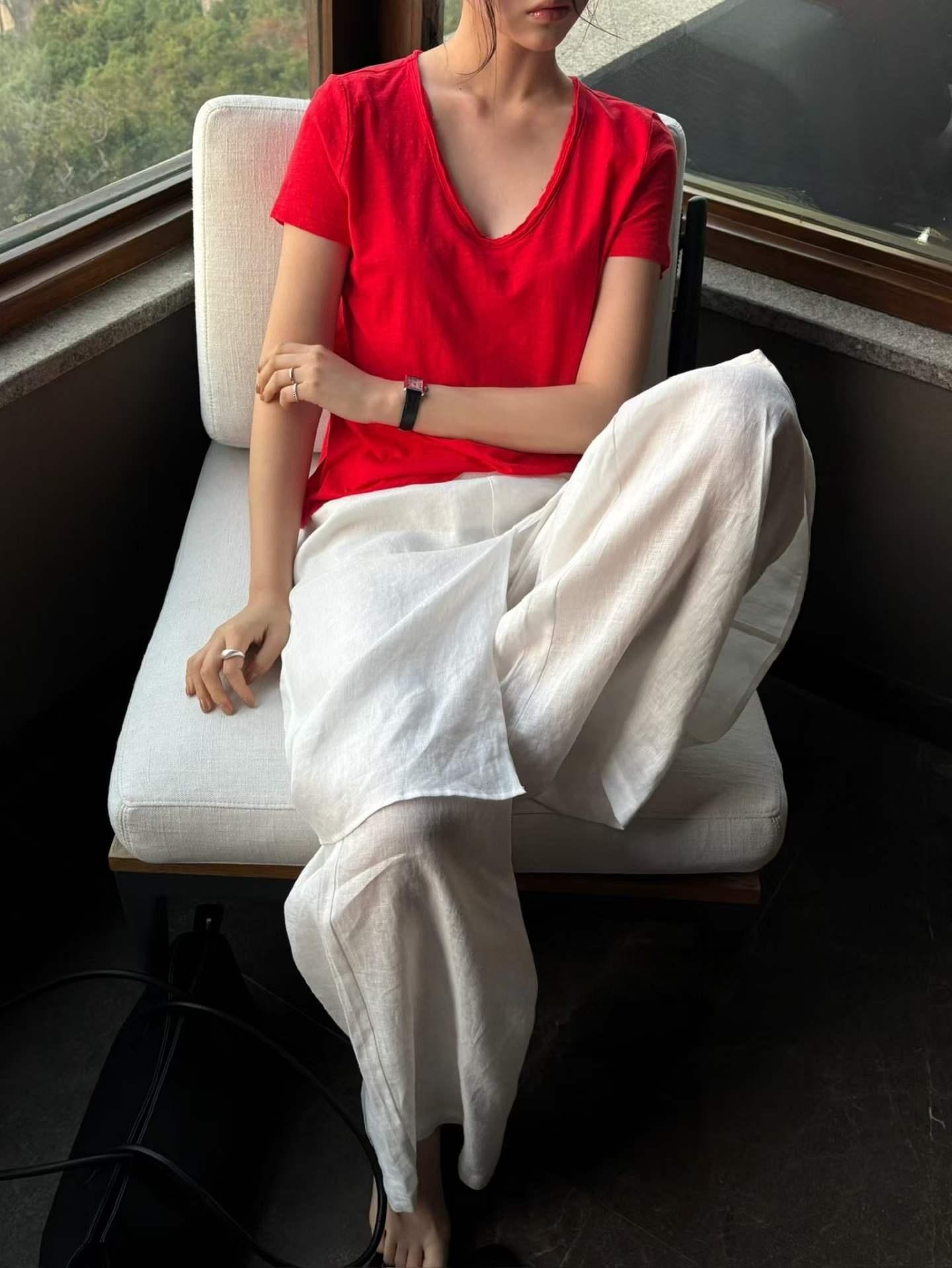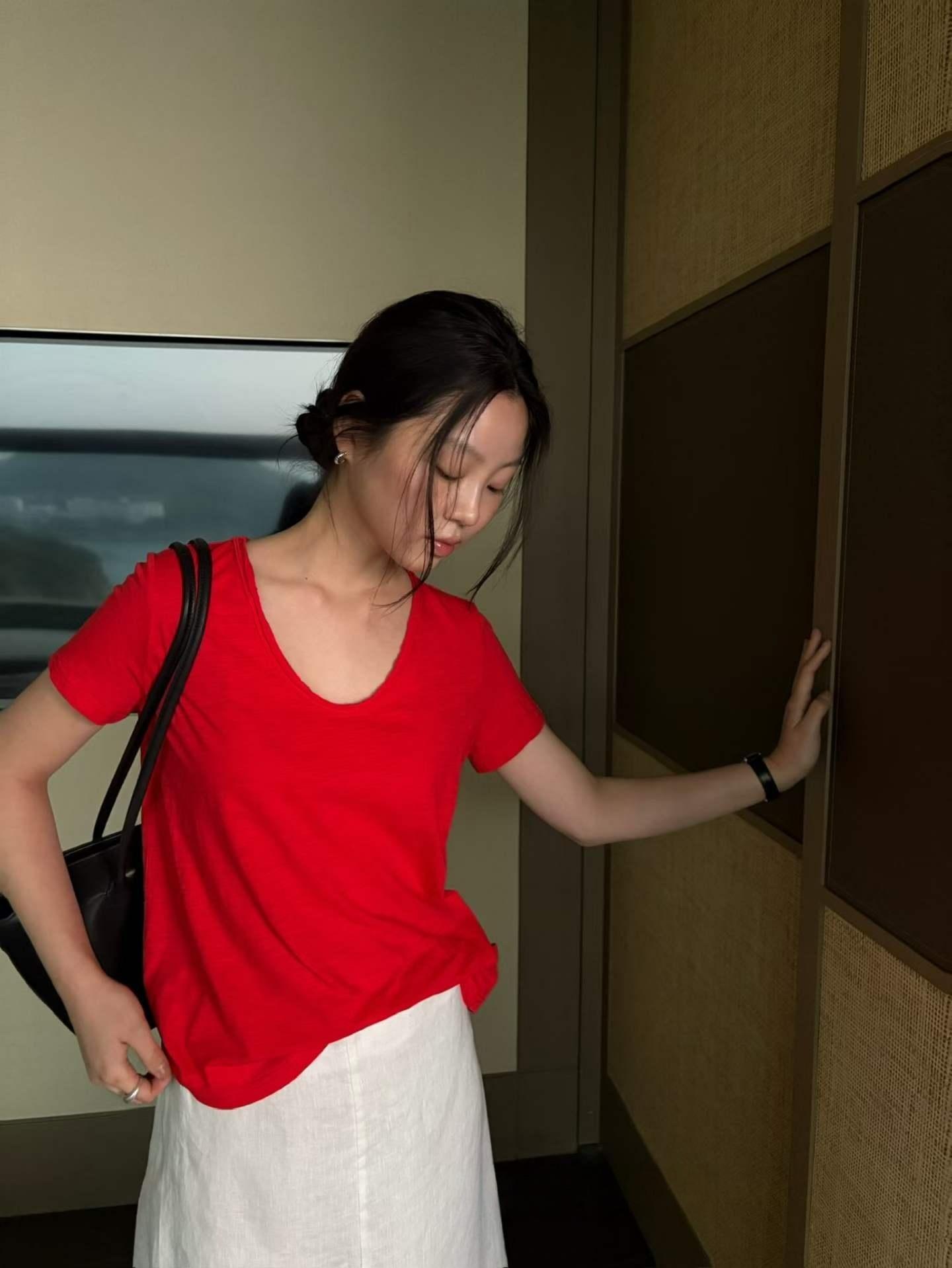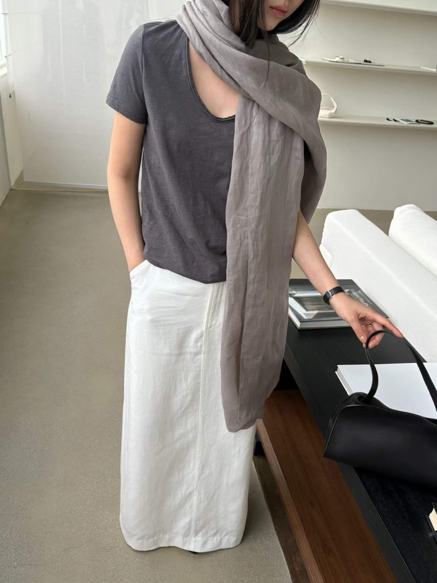 無駄を削ぎ落としたシンプルなデザインに、程よく開いたUネックがデコルテをきれいに見せ、1枚でも“ちゃんとおしゃれ”に見えるバランスに仕上げました。