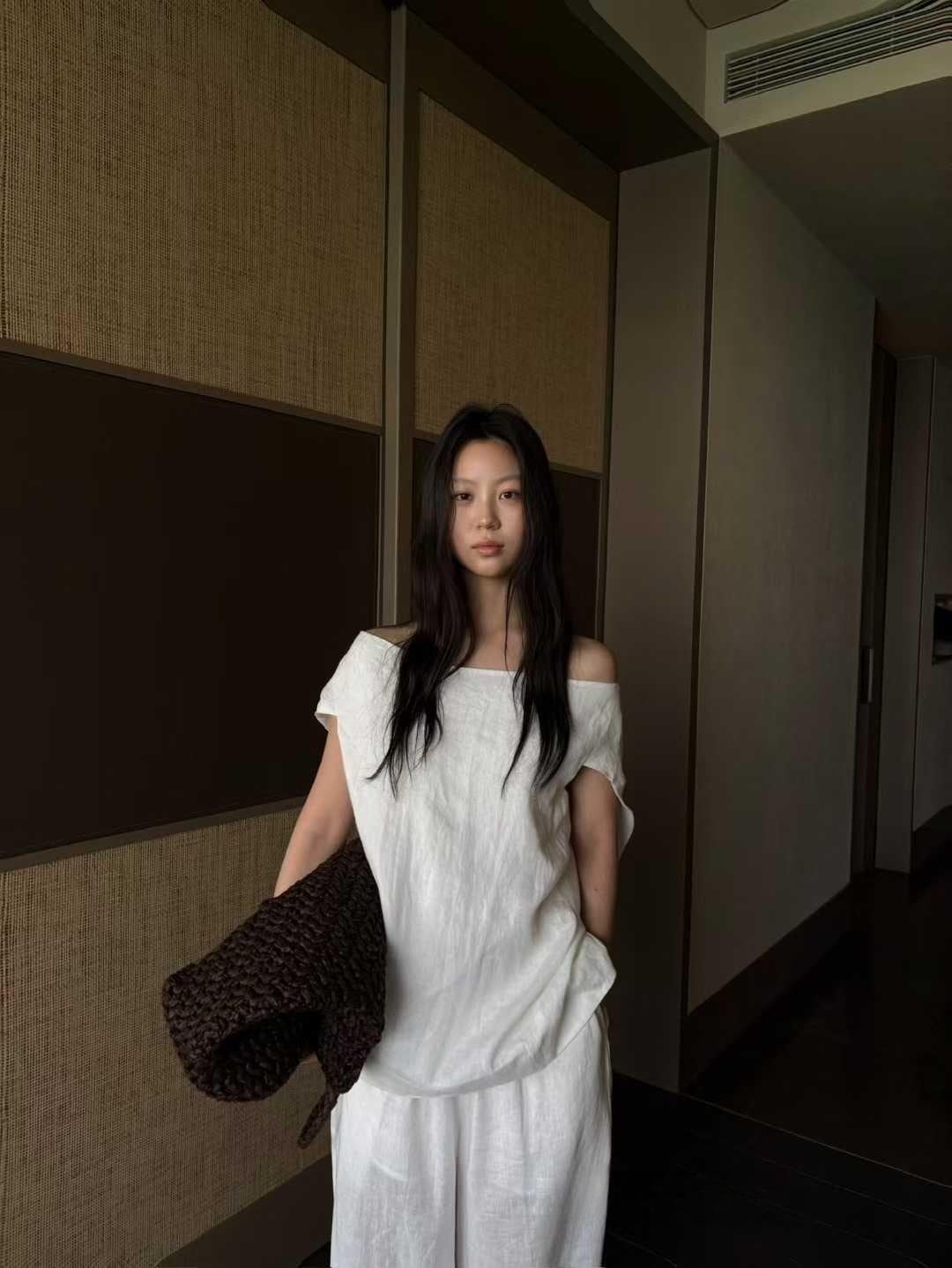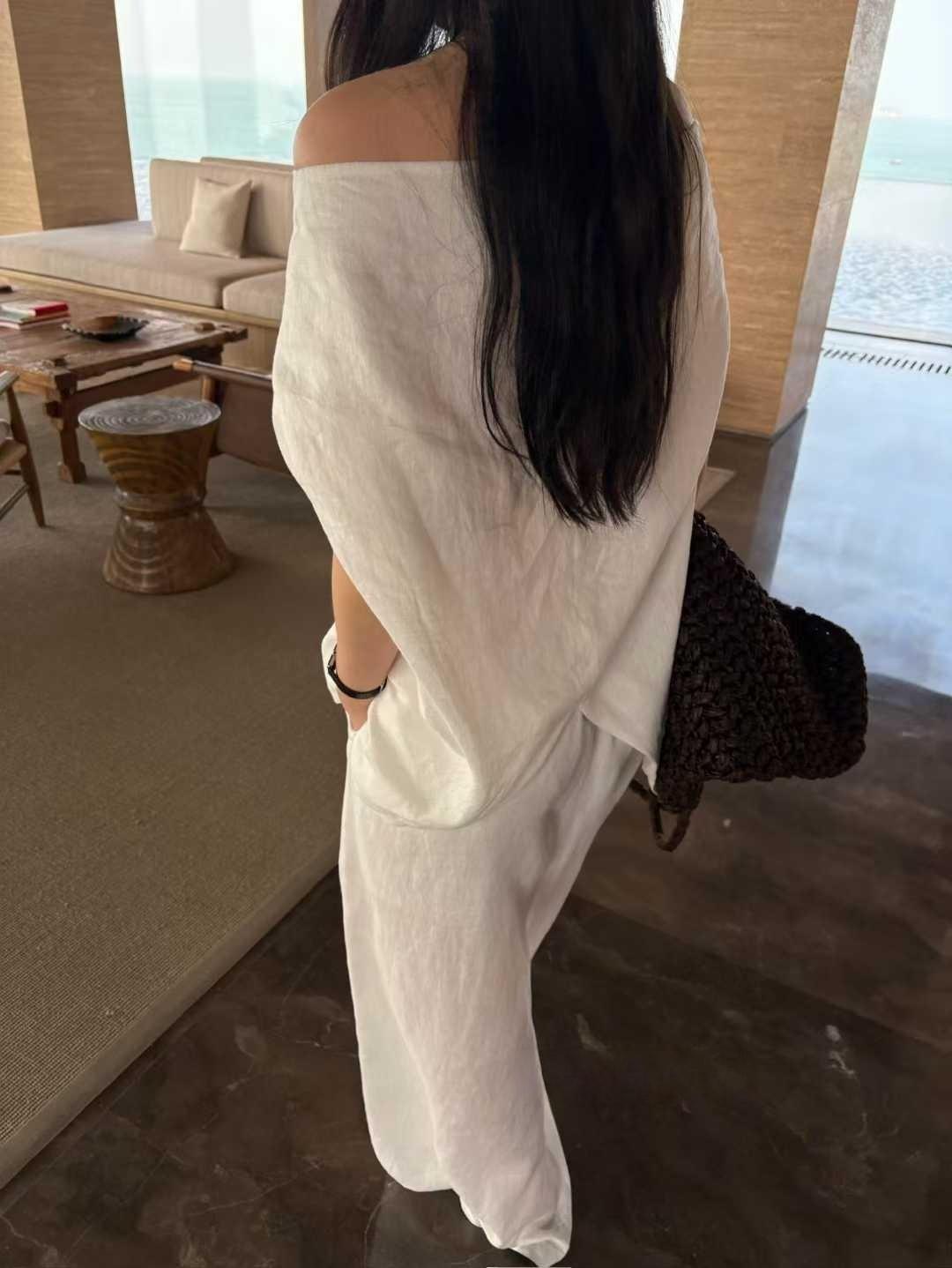 オフショルで女性らしい抜け感バックの重なりデザインで一気におしゃれ見えリネン素材で涼しく快適