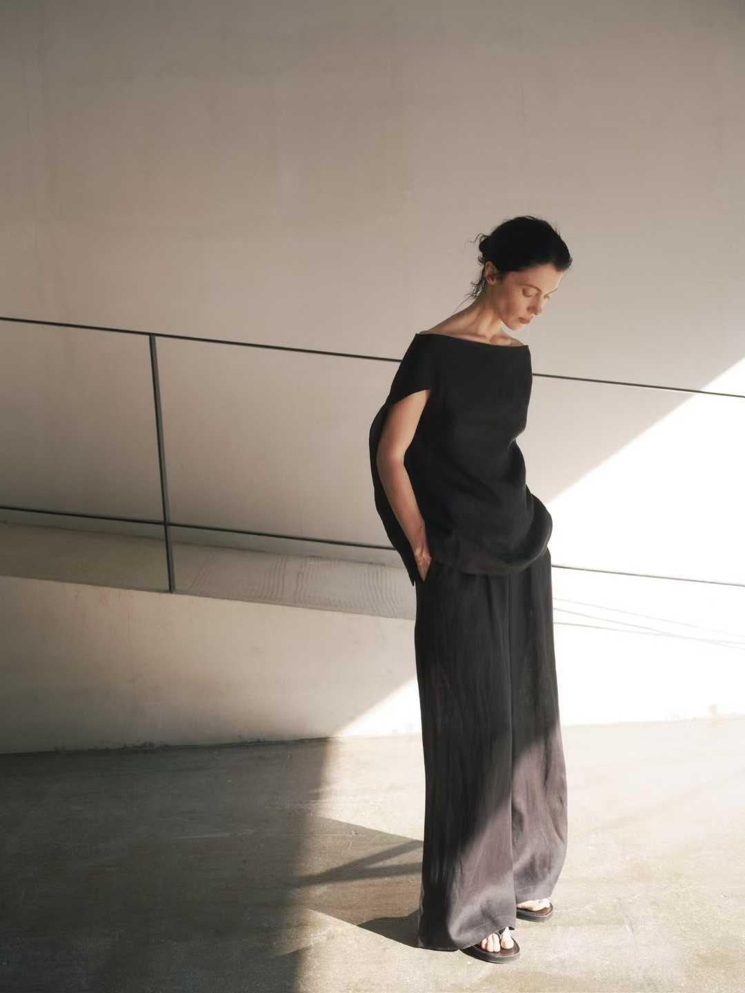 G8016 PURITY JAPAN リネン100% オフショルダートップス レディース アシンメトリー バックデザイン 半袖 体型カバー 上品 高見え フレンチミニマル 大人カジュアル 涼しい 春夏