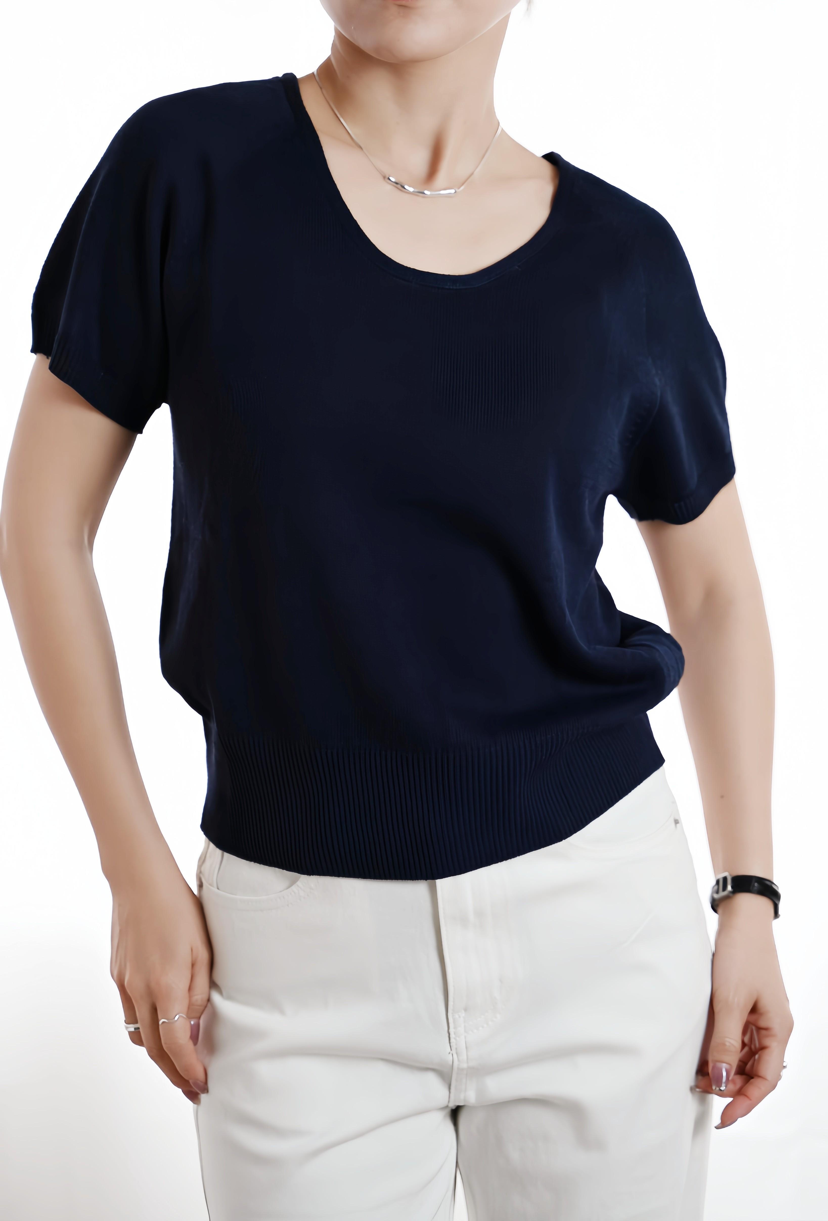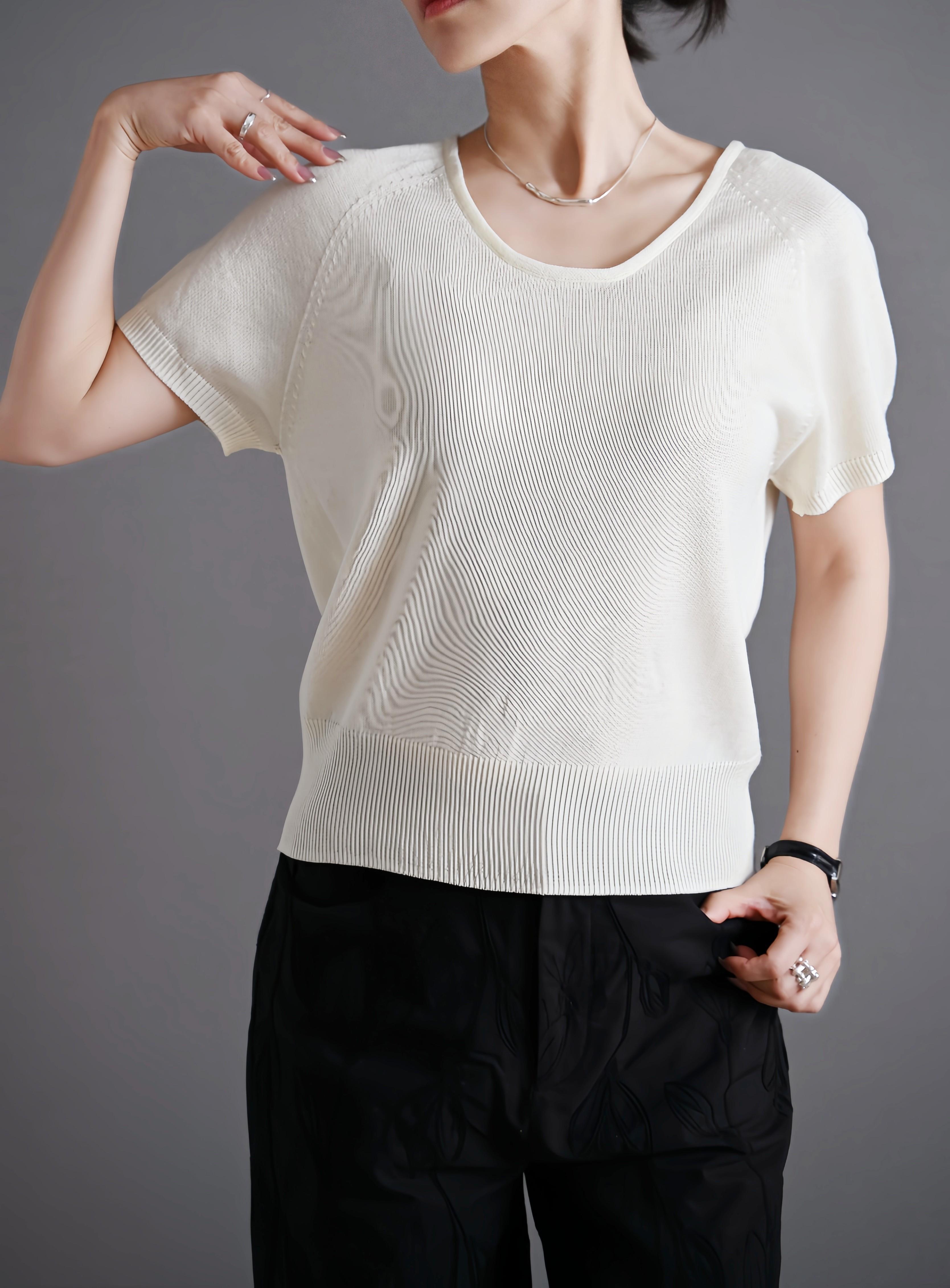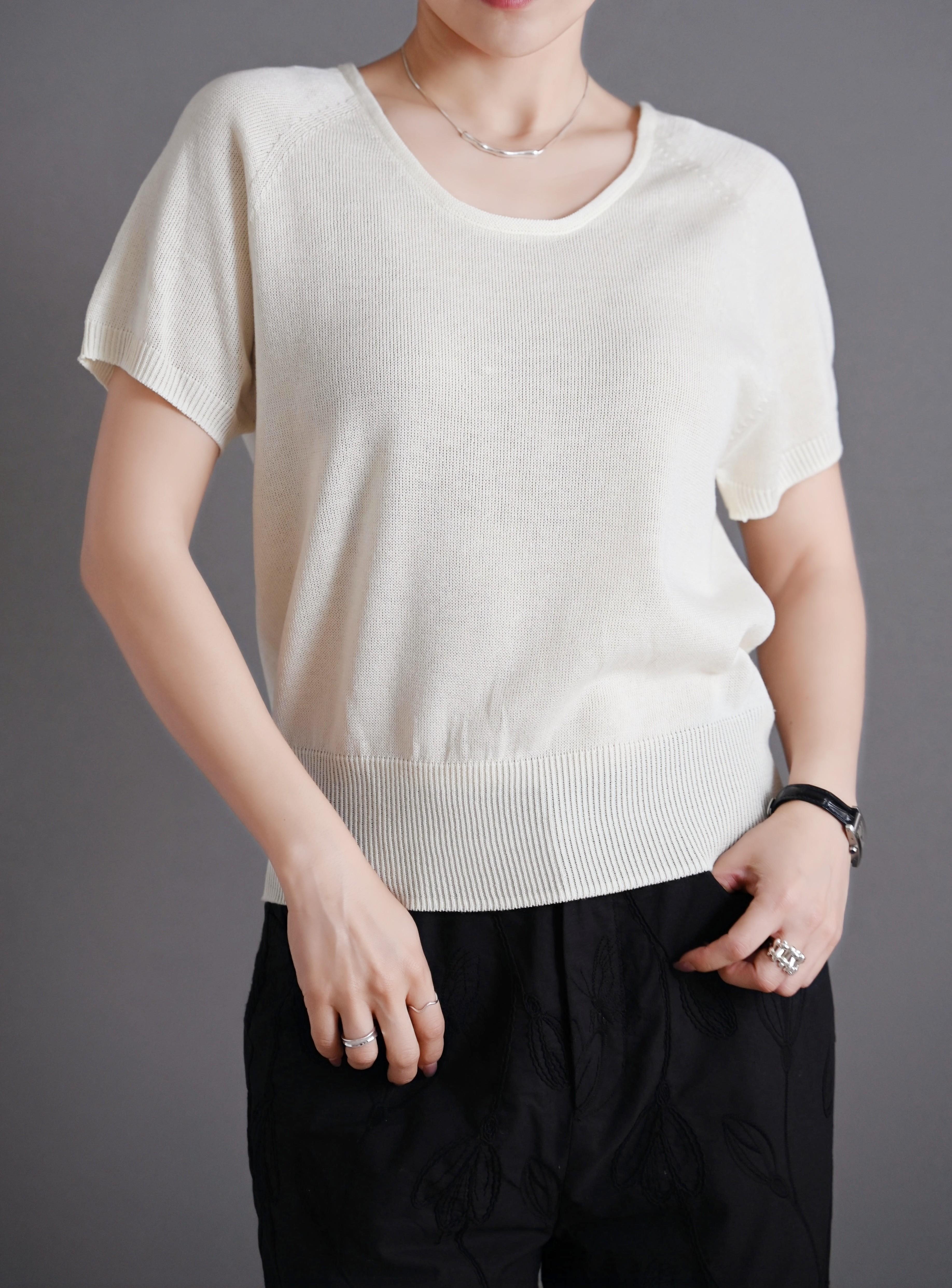やわらかなウール混素材を使用した、軽やかで上品な印象の半袖ニット。
