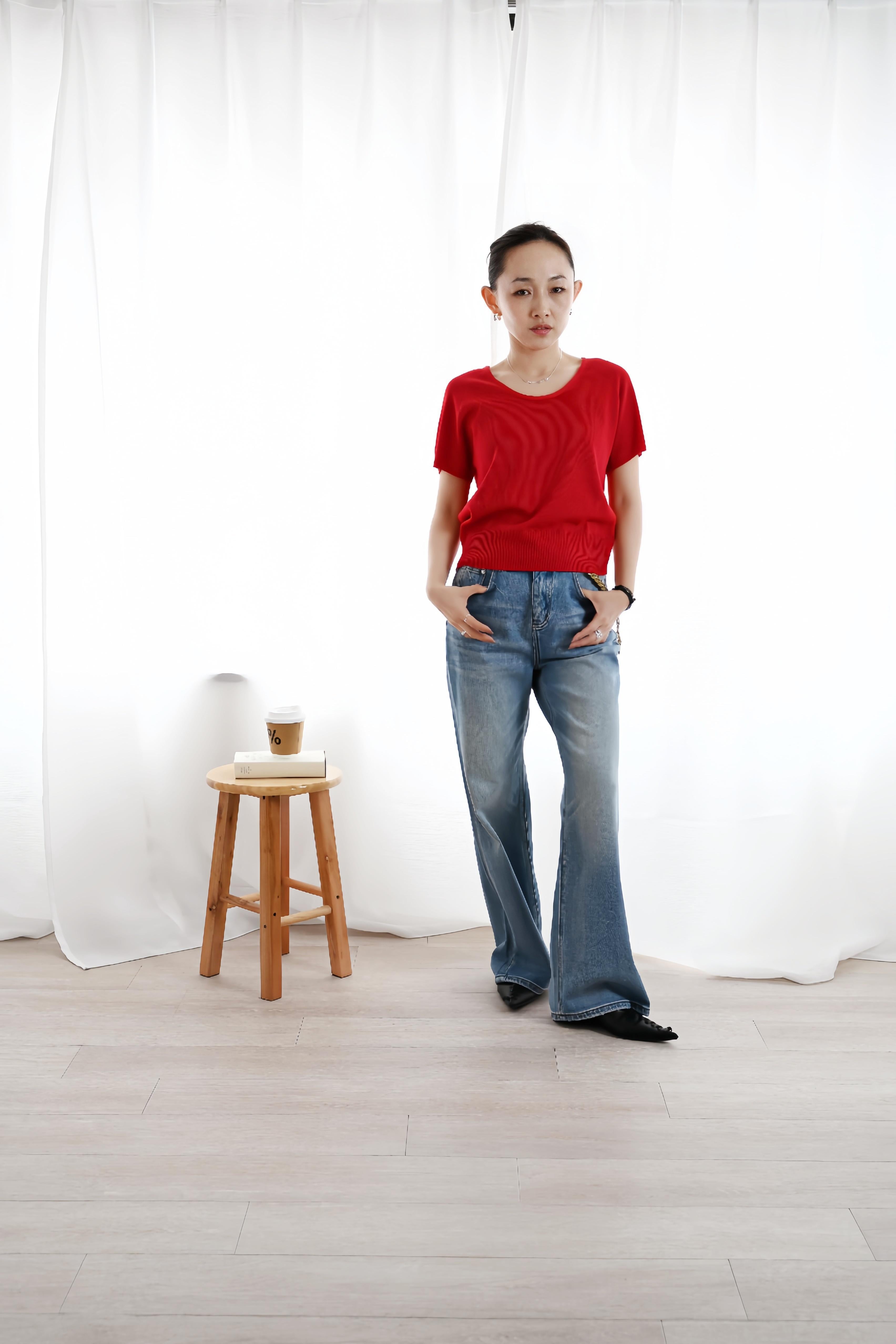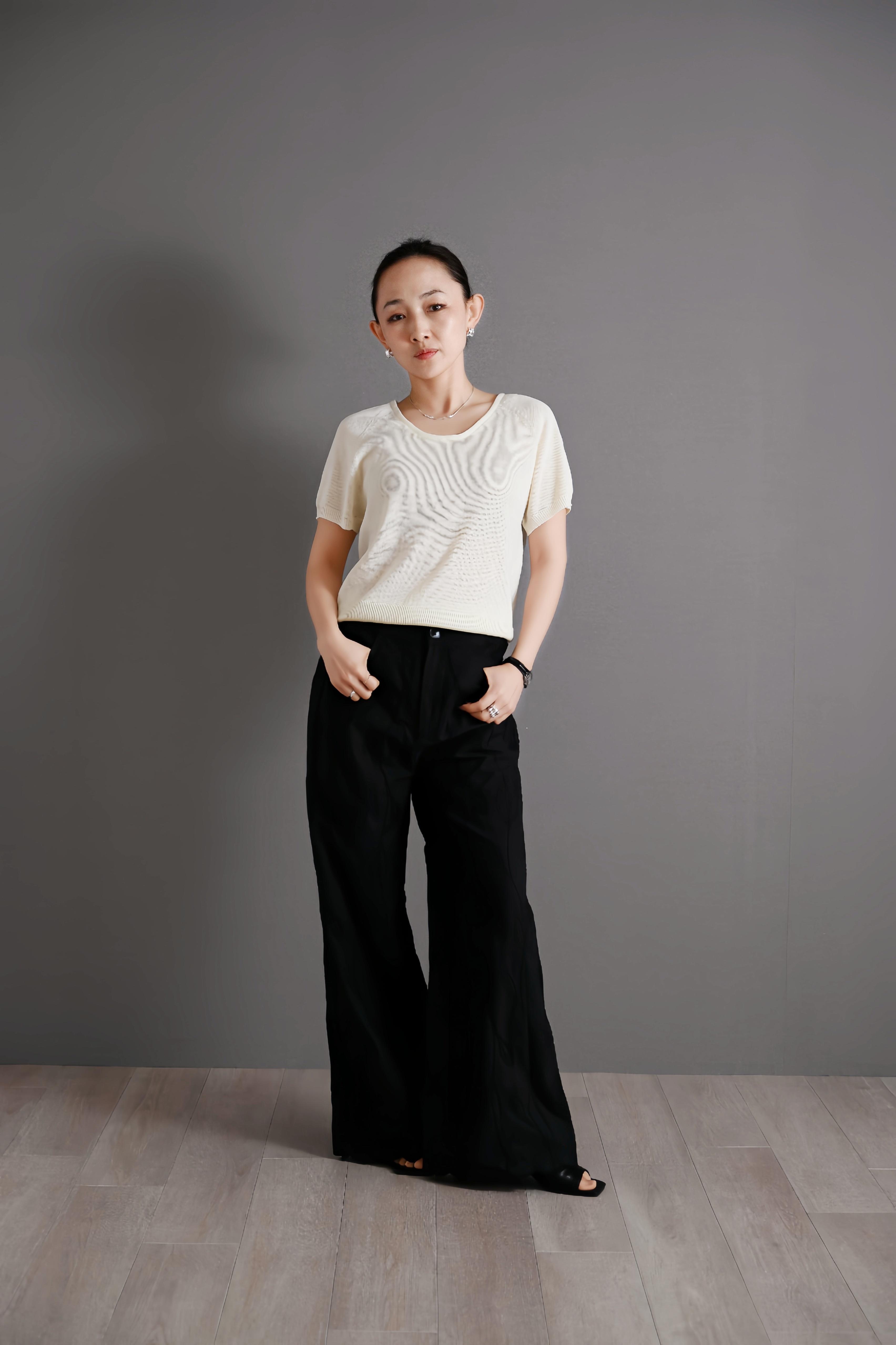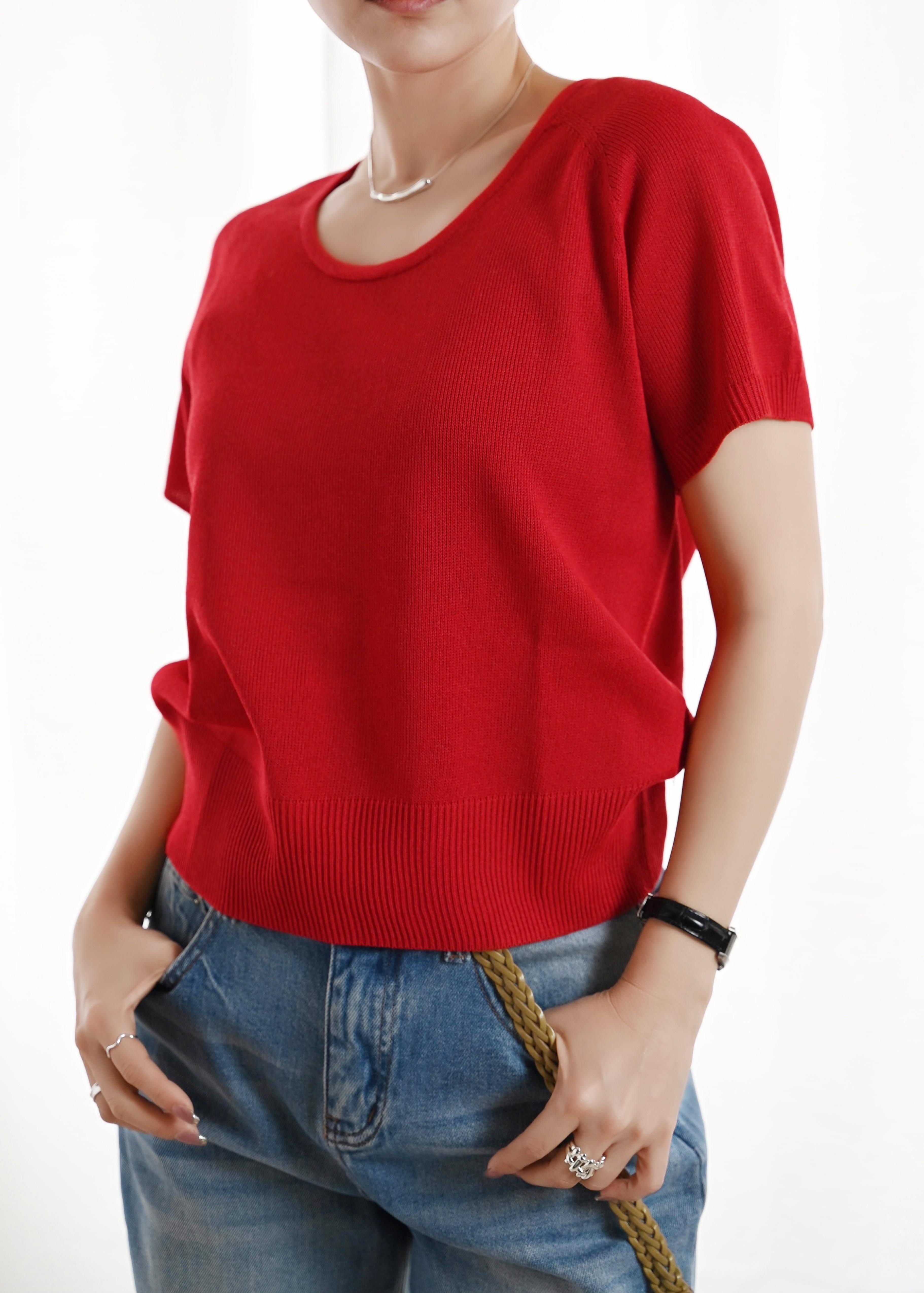 やわらかなウール混素材を使用した、軽やかで上品な印象の半袖ニット。