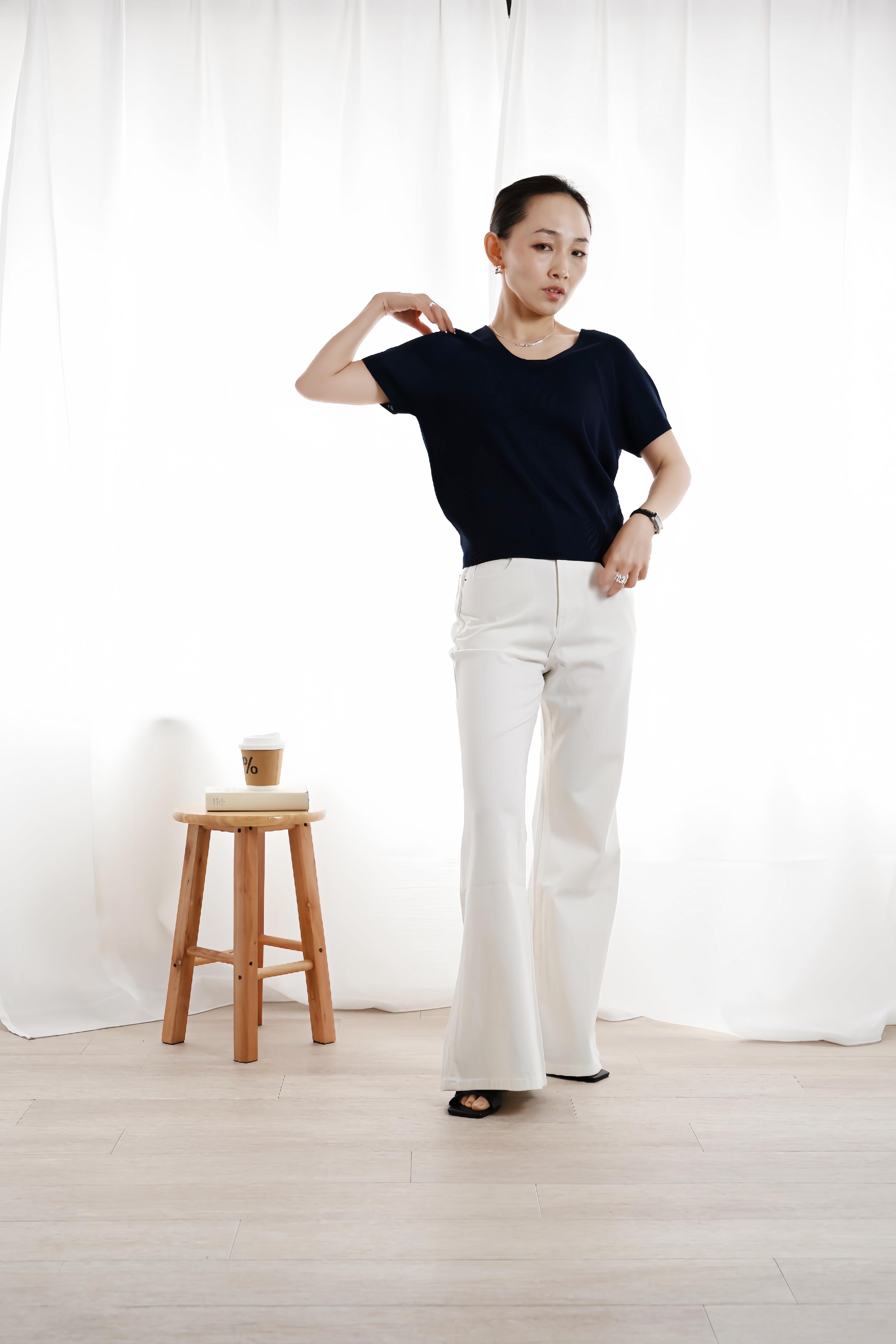 デコルテを美しく見せるUネックは、鎖骨ラインをきれいに引き立てながらも上品な印象に。