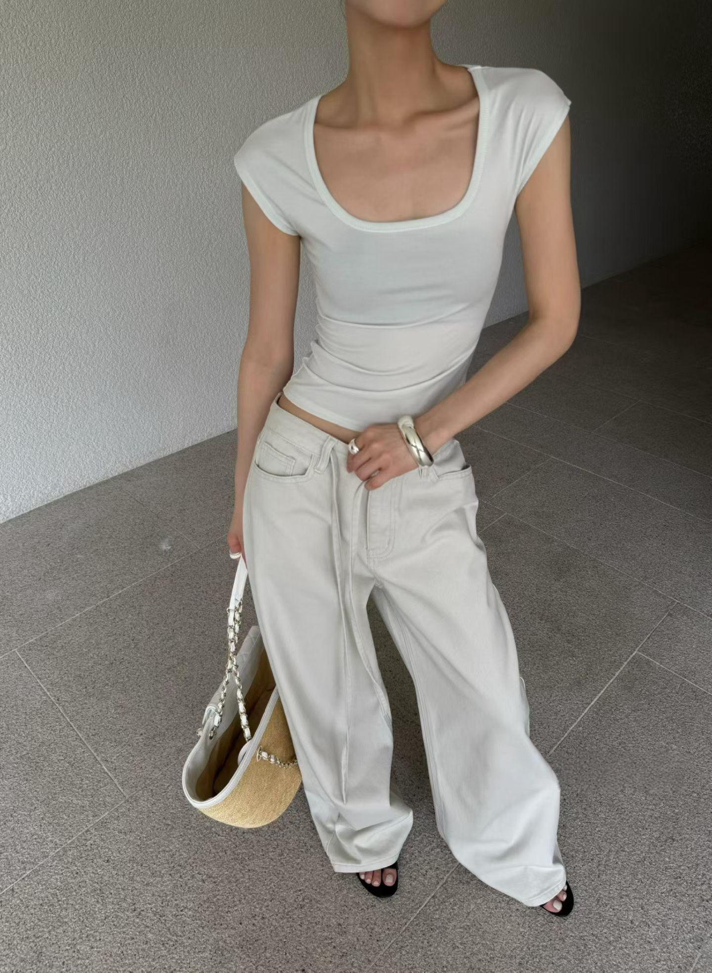 綿100%のしっかりした生地感落ち感のあるワイドストレートシルエット体のラインを拾わず、自然に細見え