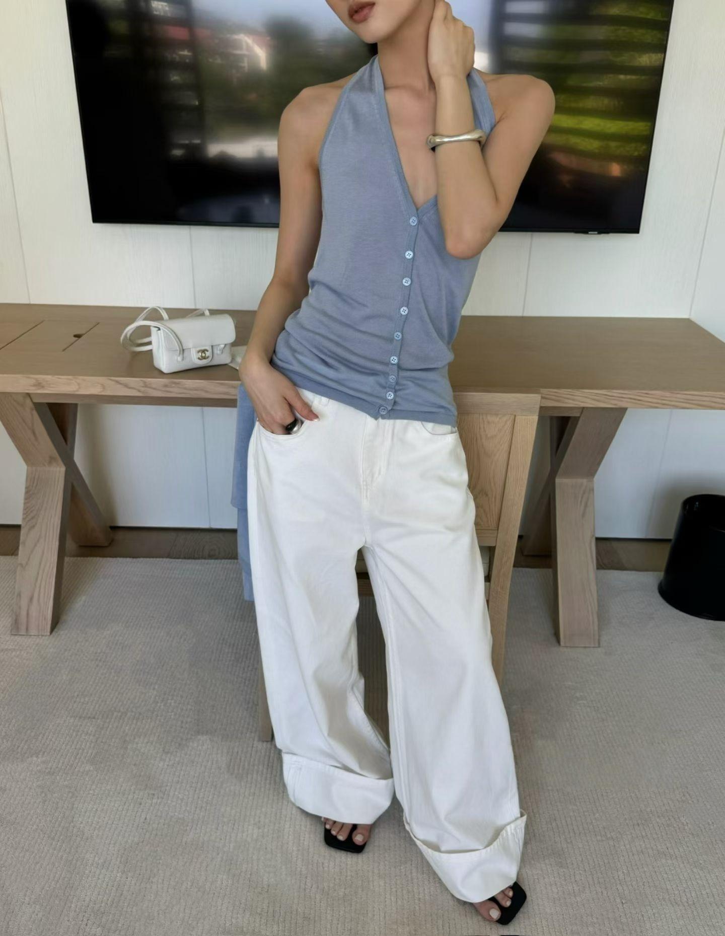 デニムやワイドパンツと合わせるだけで、大人の抜け感コーデが完成。