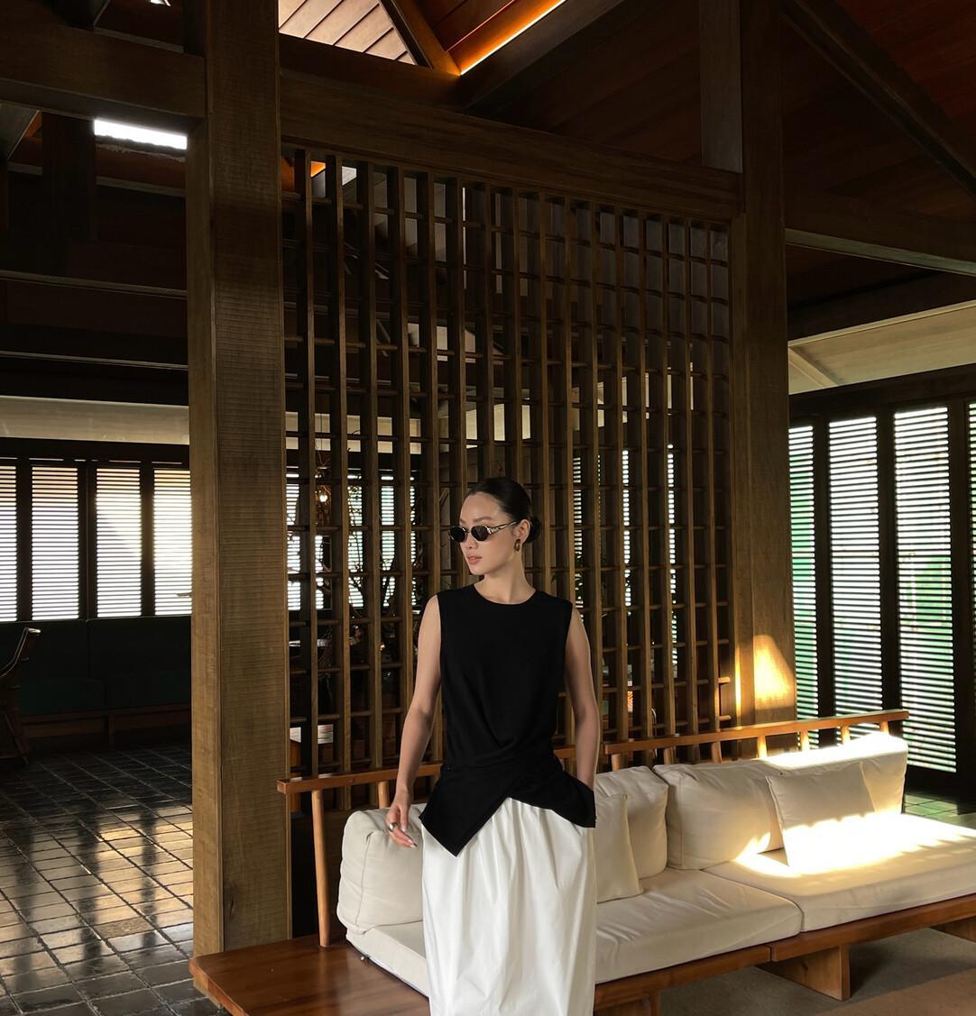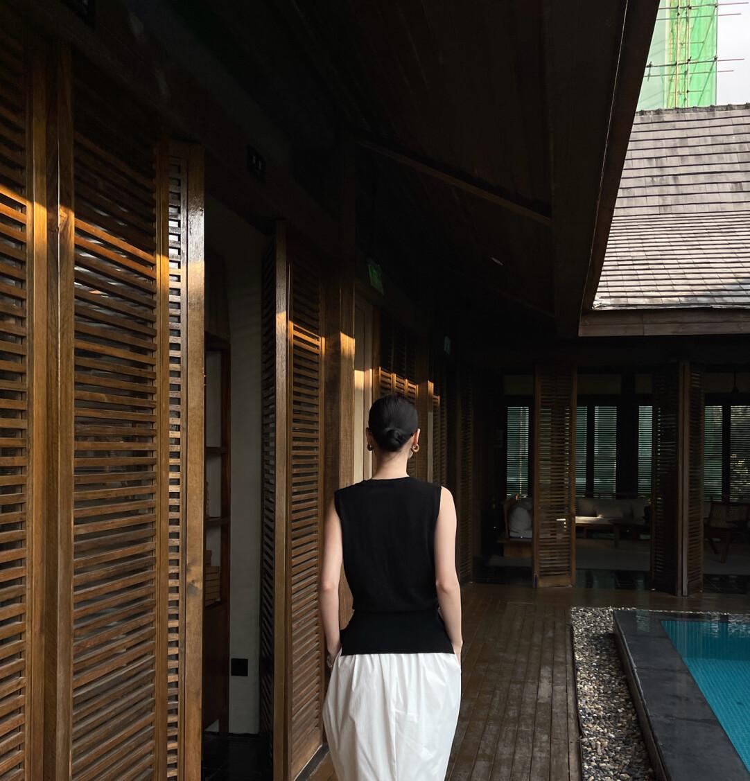 7231 PURITY JAPAN ニットベスト レディース 春夏 クロスデザイン ノースリーブトップス 無地 ゆったり 体型カバー 大人上品 フレンチミニマル 高見え 着回し