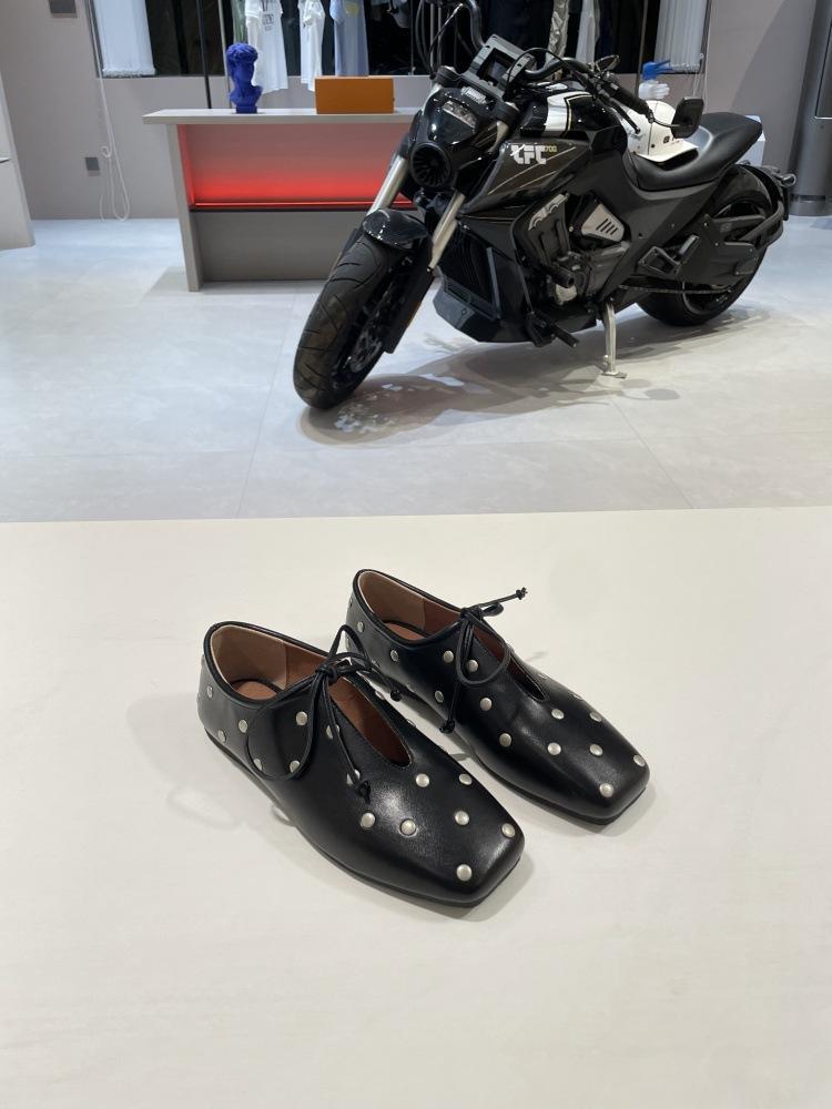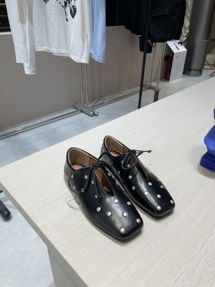 228-2 PURITY JAPAN 羊革スタッズレースアップシューズ フラットパンプス フレンチレトロ 春夏新作
